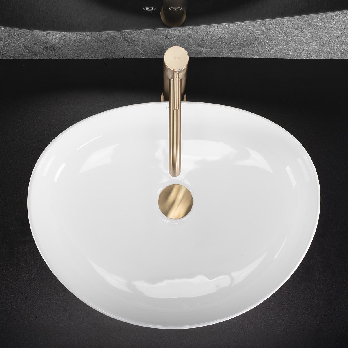 Lavabo ovale en céramique pour un design moderne et fonctionnel. .. plus