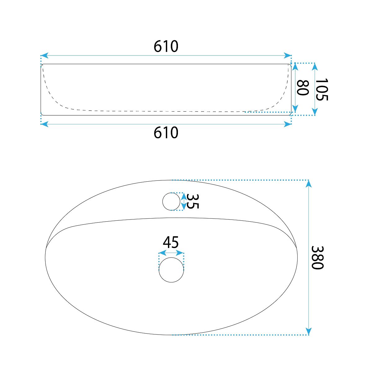 La vasque dispose d'une étagère avec un trou pour le robinet, ce qui la rend encore plus fonctionnelle. Fabriquée en céramique sanitaire de haute qualité, elle est durable, résistante aux dommages et facile à entretenir. L'installation sur le plan permet une utilisation maximale de l'espace dans la salle de bains tout en créant une composition élégante et minimaliste.