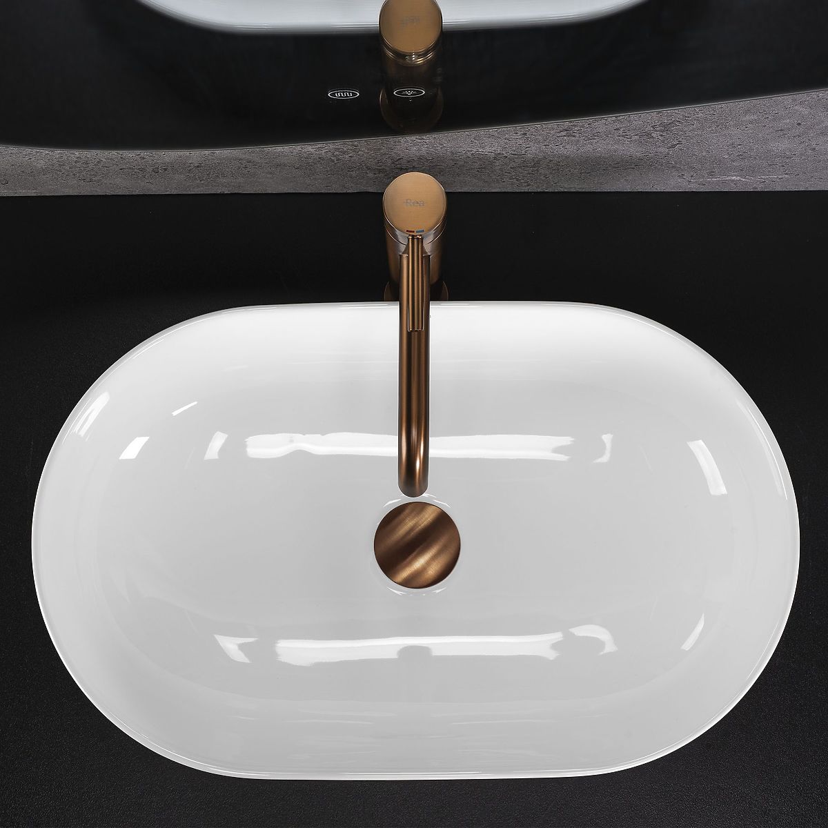 Le lavabo intemporel Amelia 52 est un modèle élégant de la gamme Amelia, disponible en différentes tailles, permettant une adaptation aux besoins individuels et à la taille de la salle de bain. Sa forme ovale universelle s'intègre parfaitement aussi bien dans des arrangements minimalistes que dans des intérieurs plus classiques.
