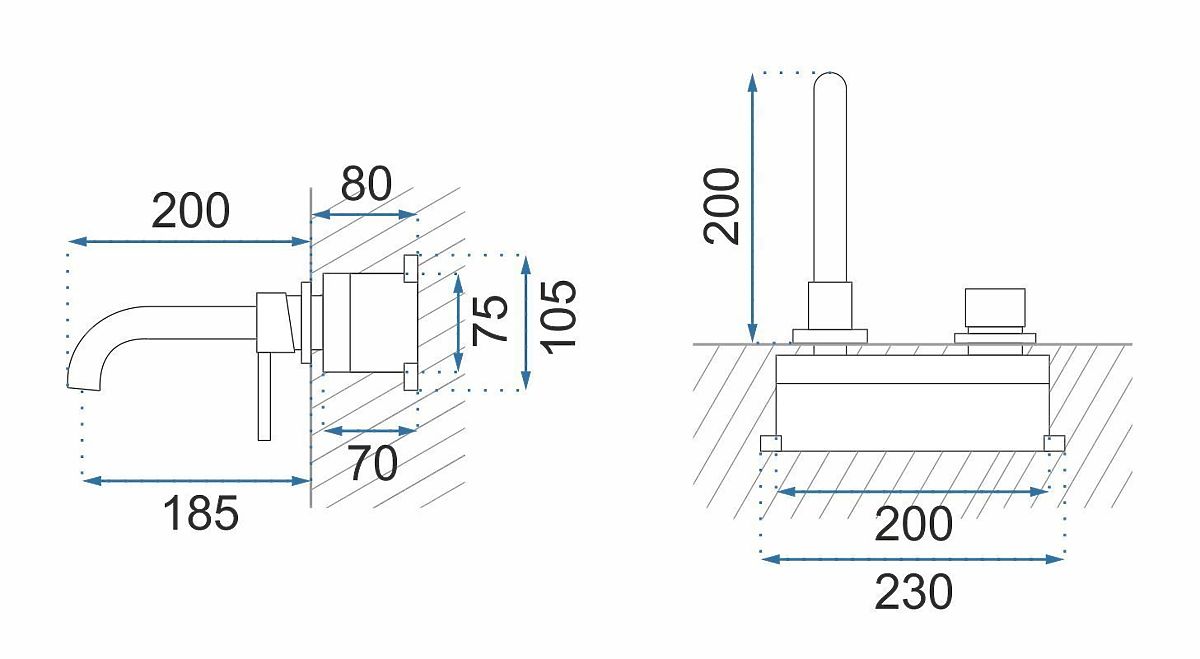 Le mitigeur encastré Lungo est une solution élégante conçue pour les salles de bains modernes où l'esthétique et la fonctionnalité sont essentielles. Le bec fin combiné à une poignée minimaliste souligne le caractère intemporel de l'armature et s'harmonise parfaitement avec les lavabos muraux et encastrés.