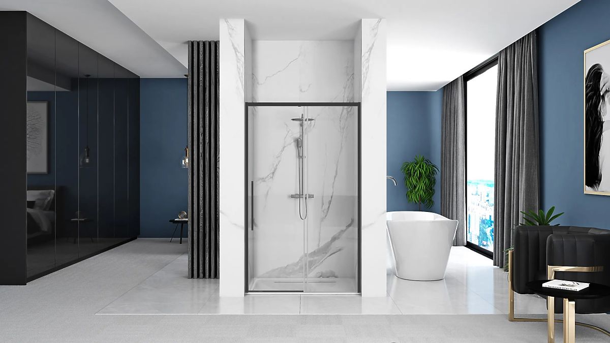 Les portes de douche Solar Black Mat sont à la fois audacieuses, intemporelles et modernes, fabriquées à partir de matériaux de la plus haute qualité et finies avec un laminé noir. La surface noire mate est résistante à la saleté et aux taches, et est en plus facile à entretenir. La combinaison de profils noirs, d'une longue poignée et de charnières avec une ligne transparente de surfaces en verre s'intègre parfaitement dans une salle de bain moderne ou traditionnelle. La couleur noire est un leader incontesté sur le marché des équipements de salle de bain.