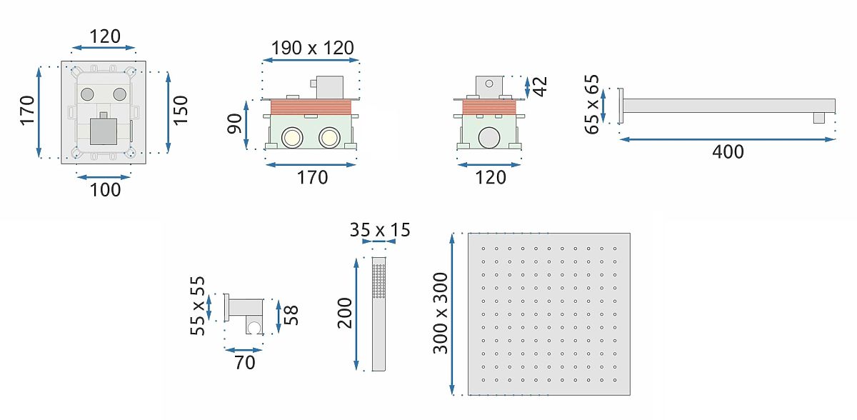 Lukahome.fr » Salle de bains et toilettes / Douches et accessoires / Ensemble de douche encastré avec thermostat FENIX DAVIS Or + BOX