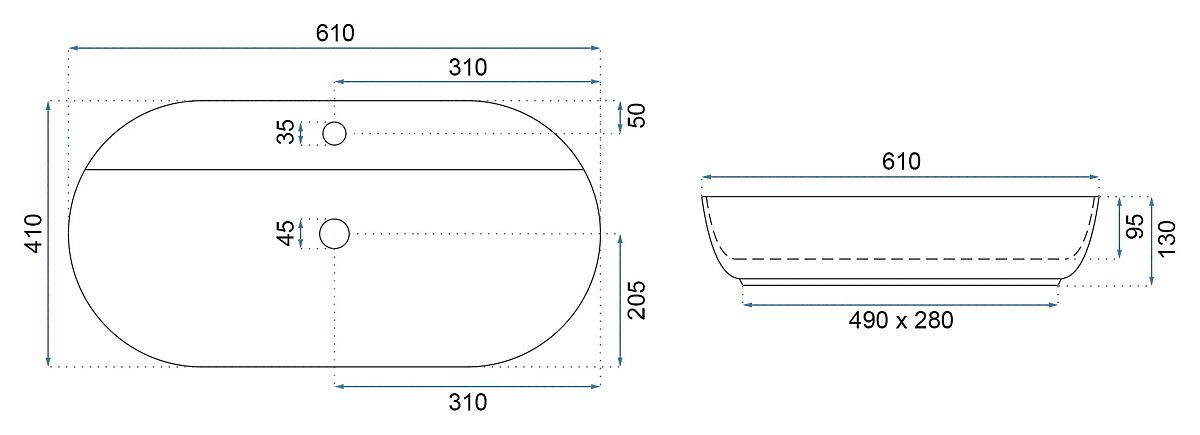 Le lavabo Rea Aura, avec sa forme elliptique intéressante, complète parfaitement tout intérieur moderne. Il est adapté pour un montage sur un plan de travail ou un meuble. Le lavabo n'est pas entièrement couvert, il a une découpe à l'arrière au niveau de l'ouverture de montage pour le robinet.