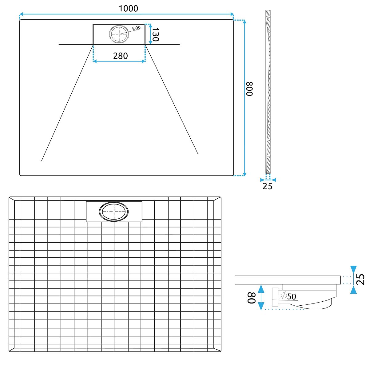 Le receveur de douche peut être placé sur le sol, encastré dans le sol et ajusté selon les besoins, ce qui le rend universel et adapté à tout intérieur. Le receveur de douche est fabriqué en matériau composite SMC, qui se distingue par une résistance exceptionnelle à l'humidité, aux dommages mécaniques et à l'action des détergents, ce qui se traduit par une durabilité exceptionnelle du produit, légèreté et élégance.