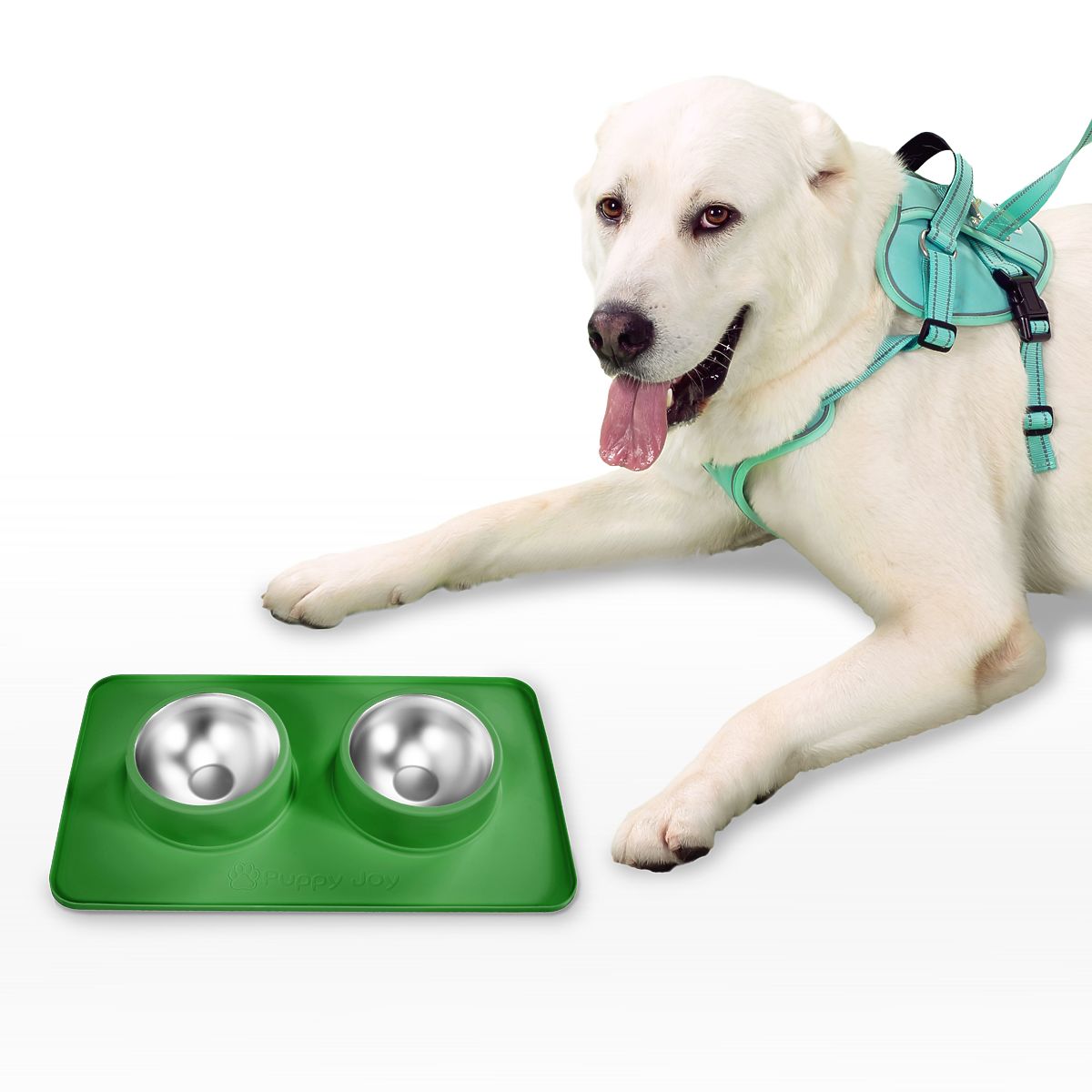 Gamelles en Métal pour Chien ou Chat avec Tapis Antidérapant Vert PJ-087