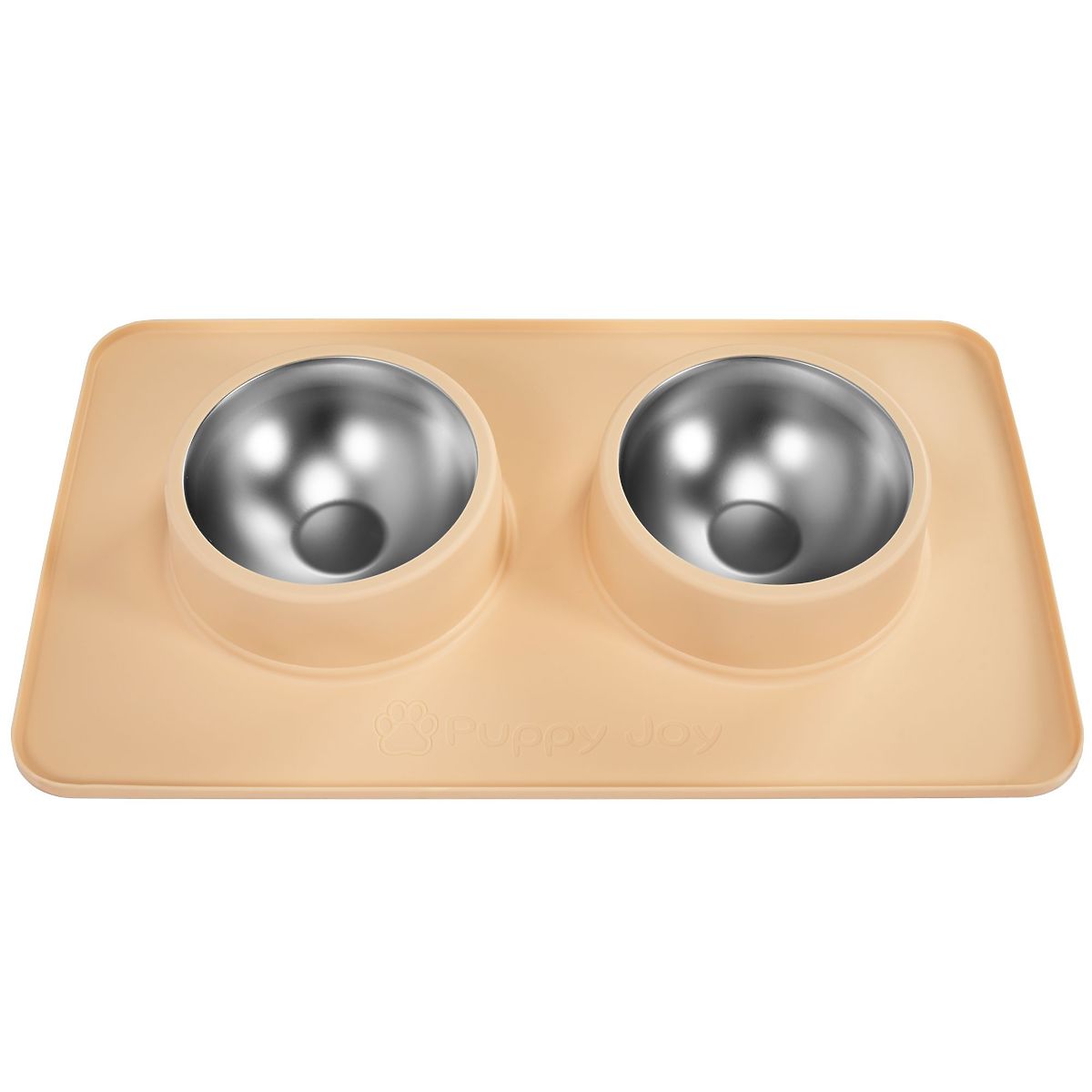 Lukahome.fr » Pro animaux domestiques / Selfns de animaux domestiques / Gamelles en Métal pour Chien ou Chat avec Tapis Antidérapant Beige PJ-089