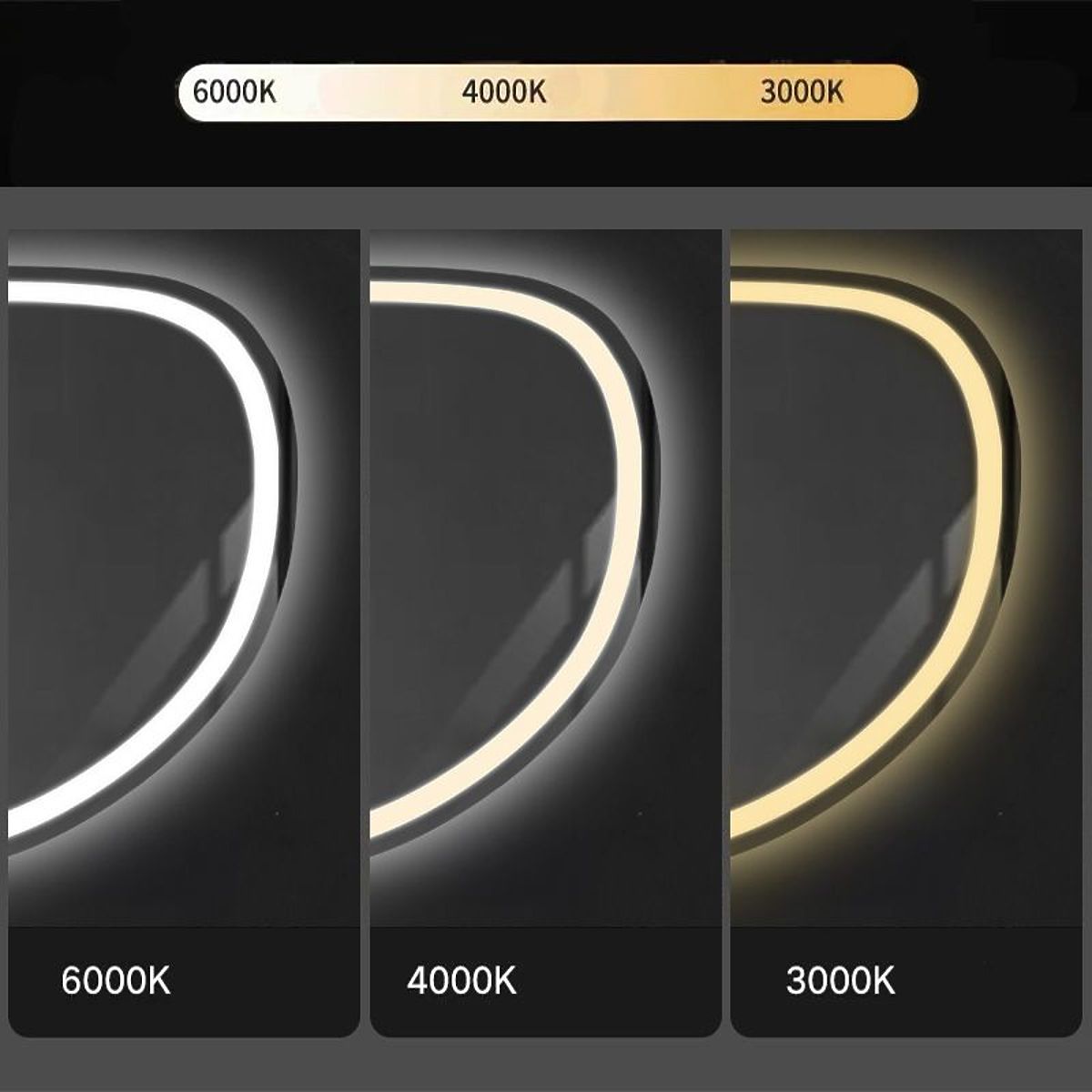 Le miroir asymétrique avec éclairage LED est un choix parfait pour ceux qui apprécient le confort d'utilisation et le design moderne. Fabriqué à partir de matériaux de la plus haute qualité, il se présente magnifiquement et est très résistant. Il offre trois couleurs de lumière LED modifiables par toucher - chaude, neutre et froide, ainsi qu'une fonction de chauffage qui empêche la surface de s'embuer. Le câble d'alimentation blanc a une longueur de 110 cm.