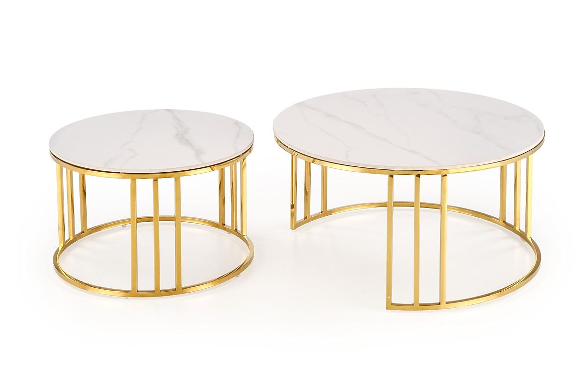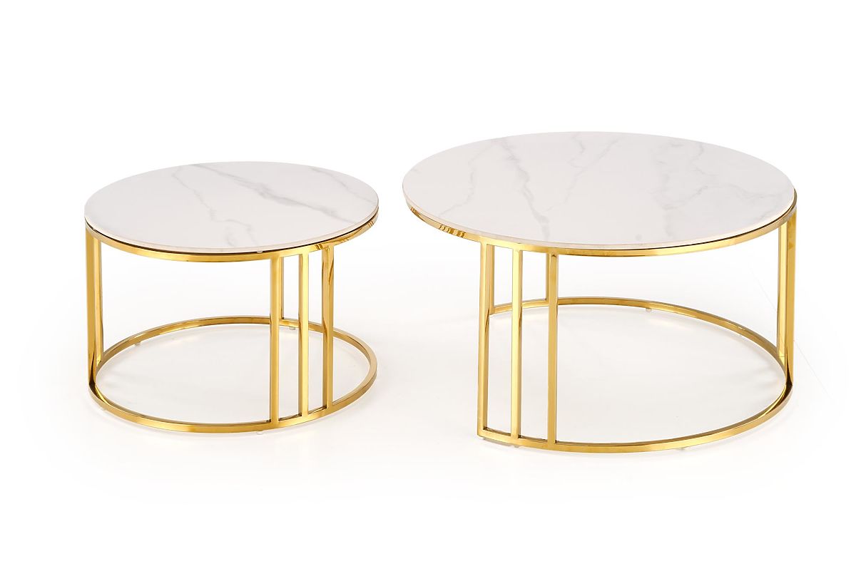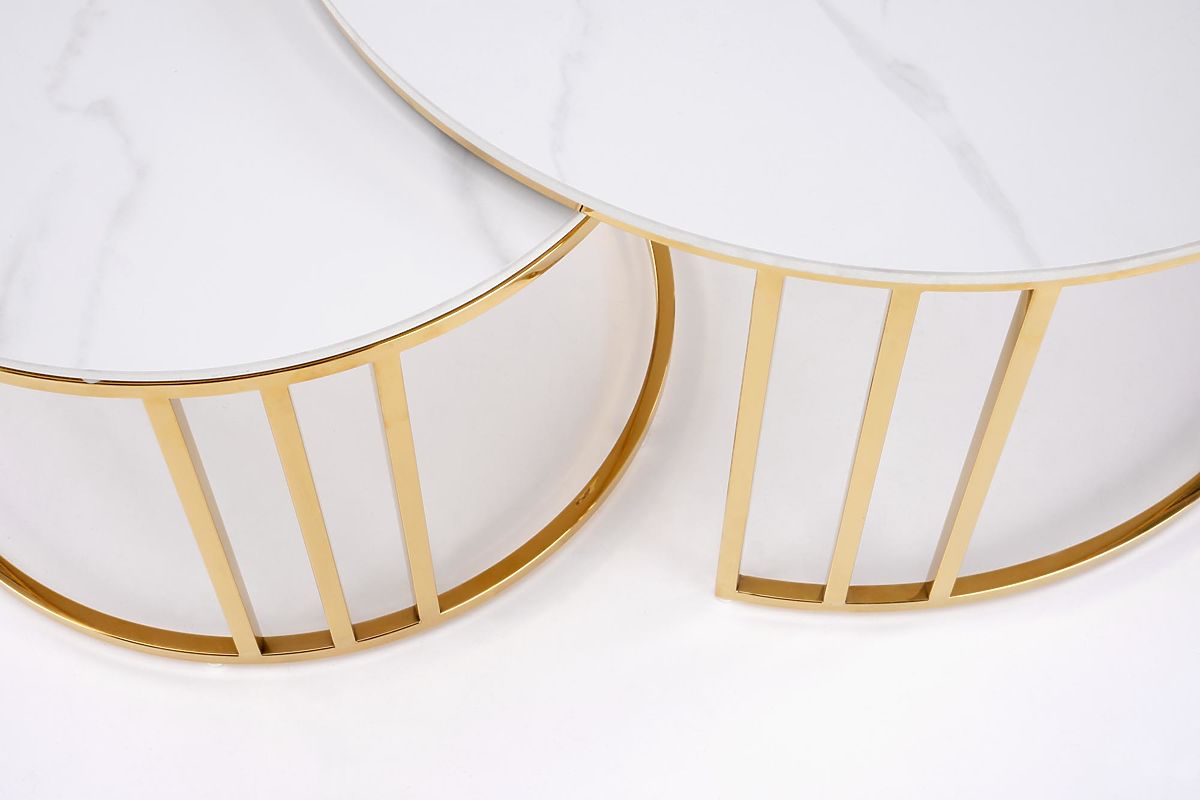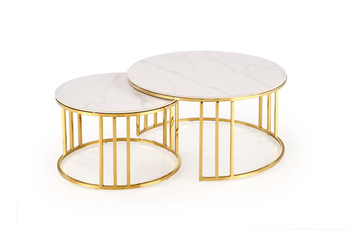 Lukahome.fr » Tables et tables basses / Tables basses / MERCURY 3 ensemble de 2 bancs, ensemble de 2 bancs, couleur : marbre blanc / or (2p=1pcs)