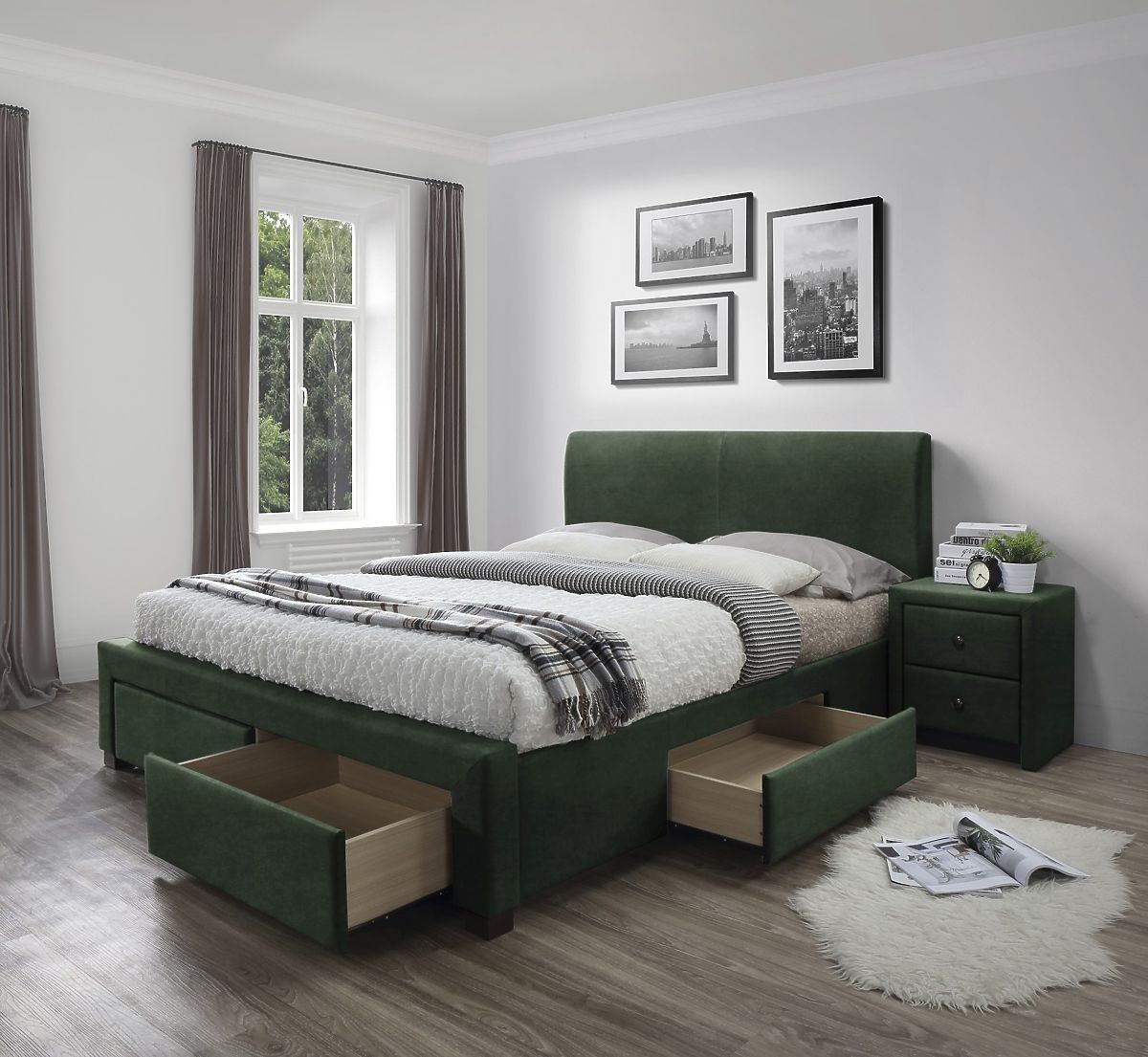 Lukahome.fr » Lit / Matrimonial lit / Lit 160x200 / Lit MODENA 3 avec tiroirs en velours vert foncé (6p=1ks)