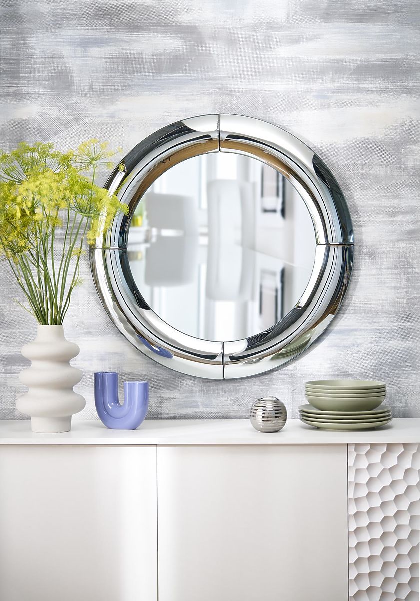 Miroir mural argenté de dimensions 80/80/3,7 cm. .. plus