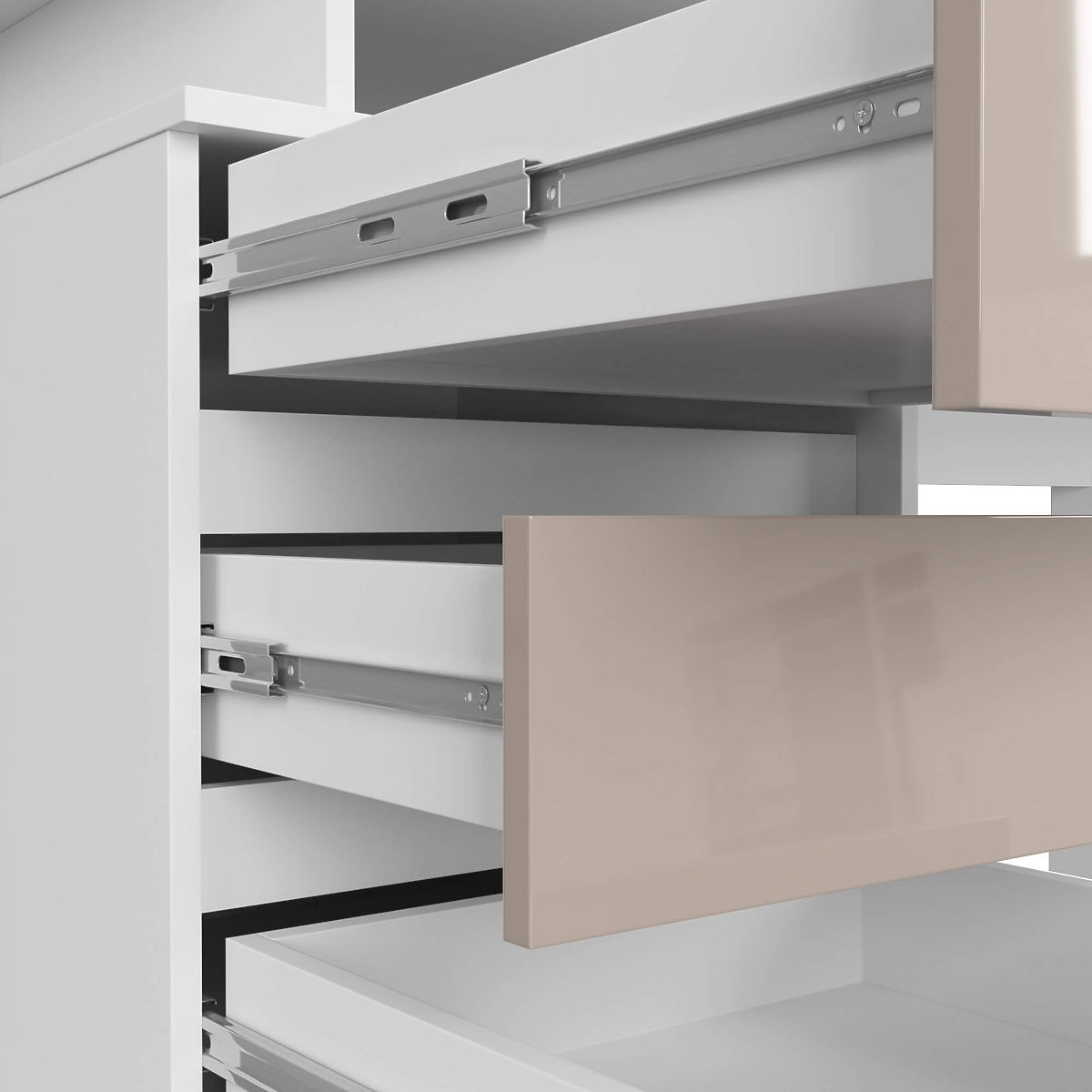 - Façades des tiroirs en panneau MDF 19 mm acrylique brillant