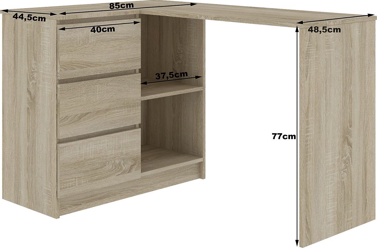 Bureau d'angle avec trois tiroirs en chêne sonoma et blanc. .. plus