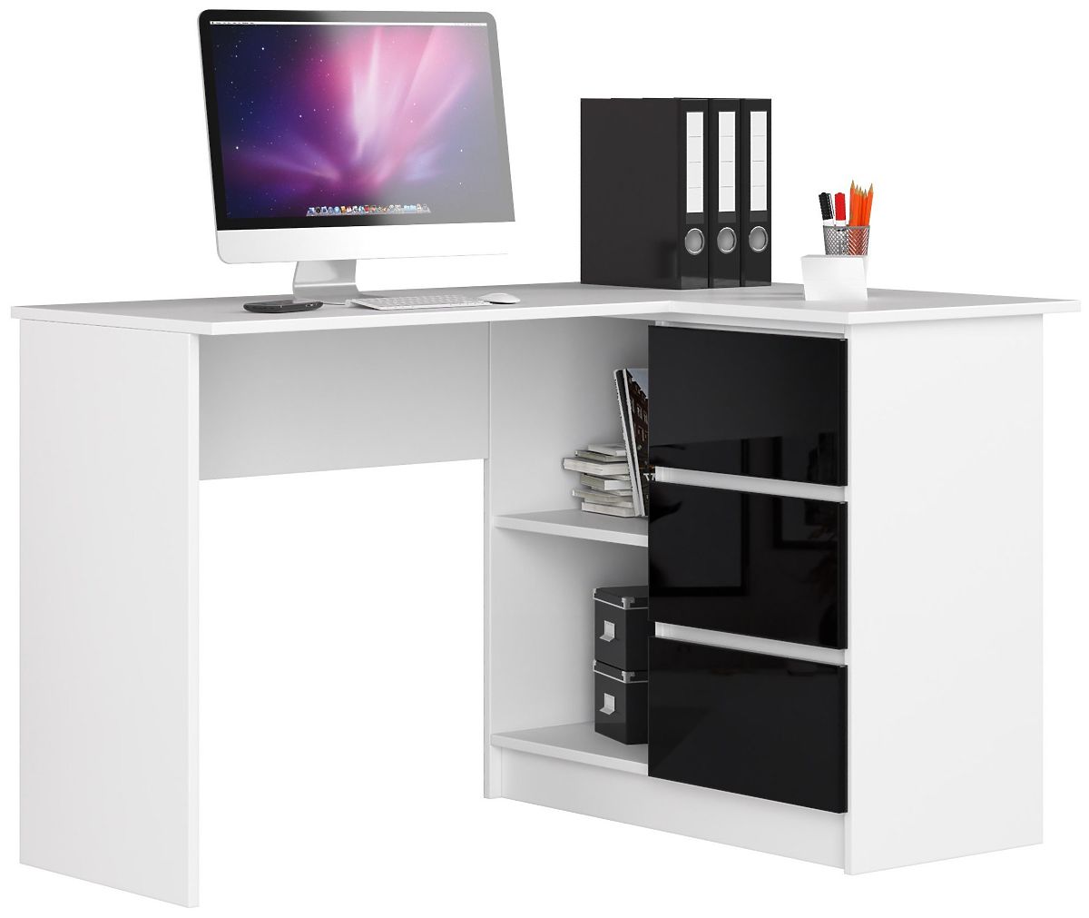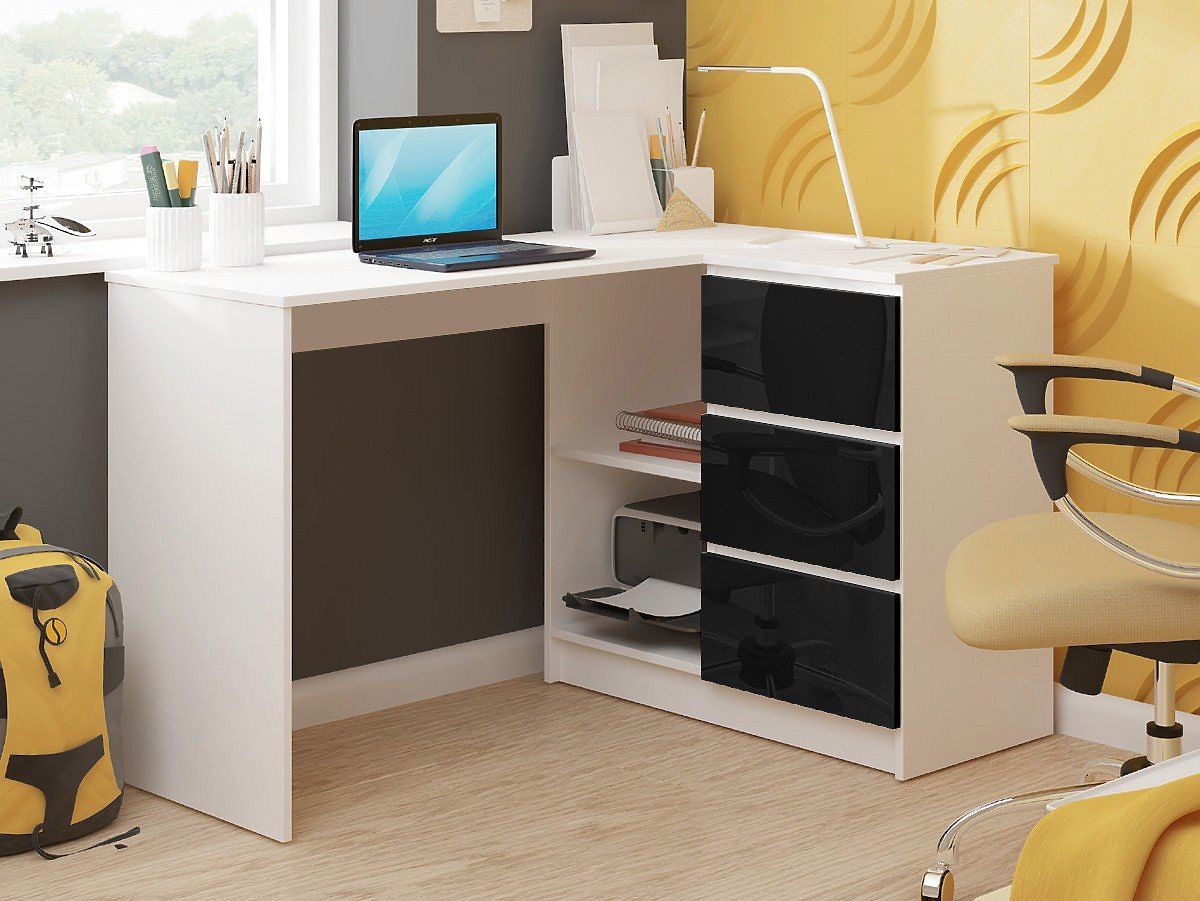 Lukahome.fr » Tables et tables basses / bureaux / BUREAU D'ANGLE B16 124 cm DROIT 3 TIROIRS PK BLANC / NOIR BRILLANT
