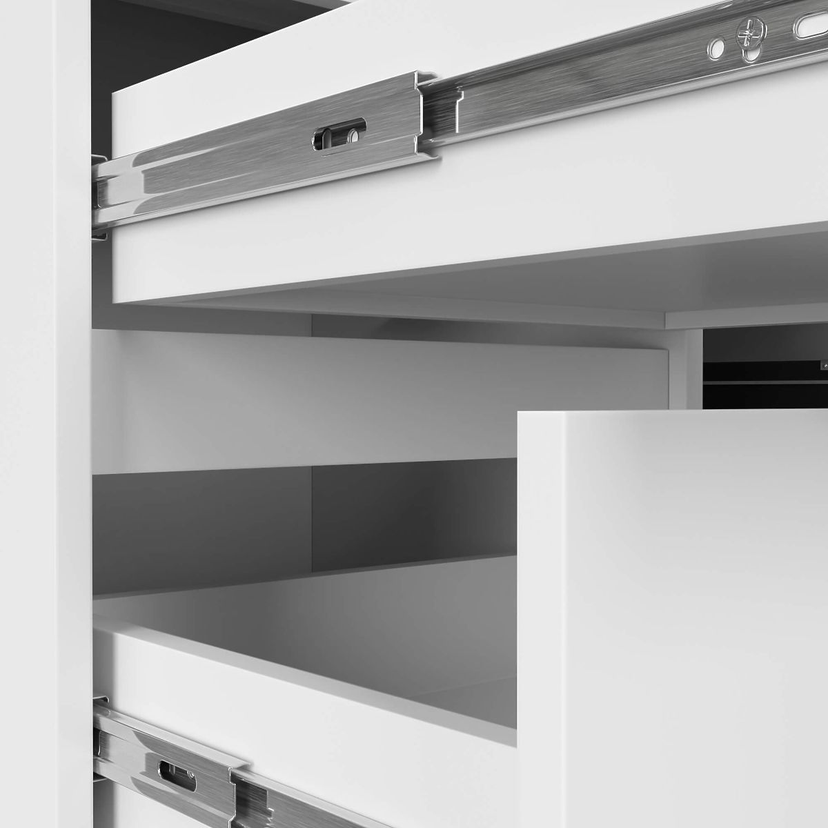 - Les tiroirs se déplacent sur des glissières à billes métalliques