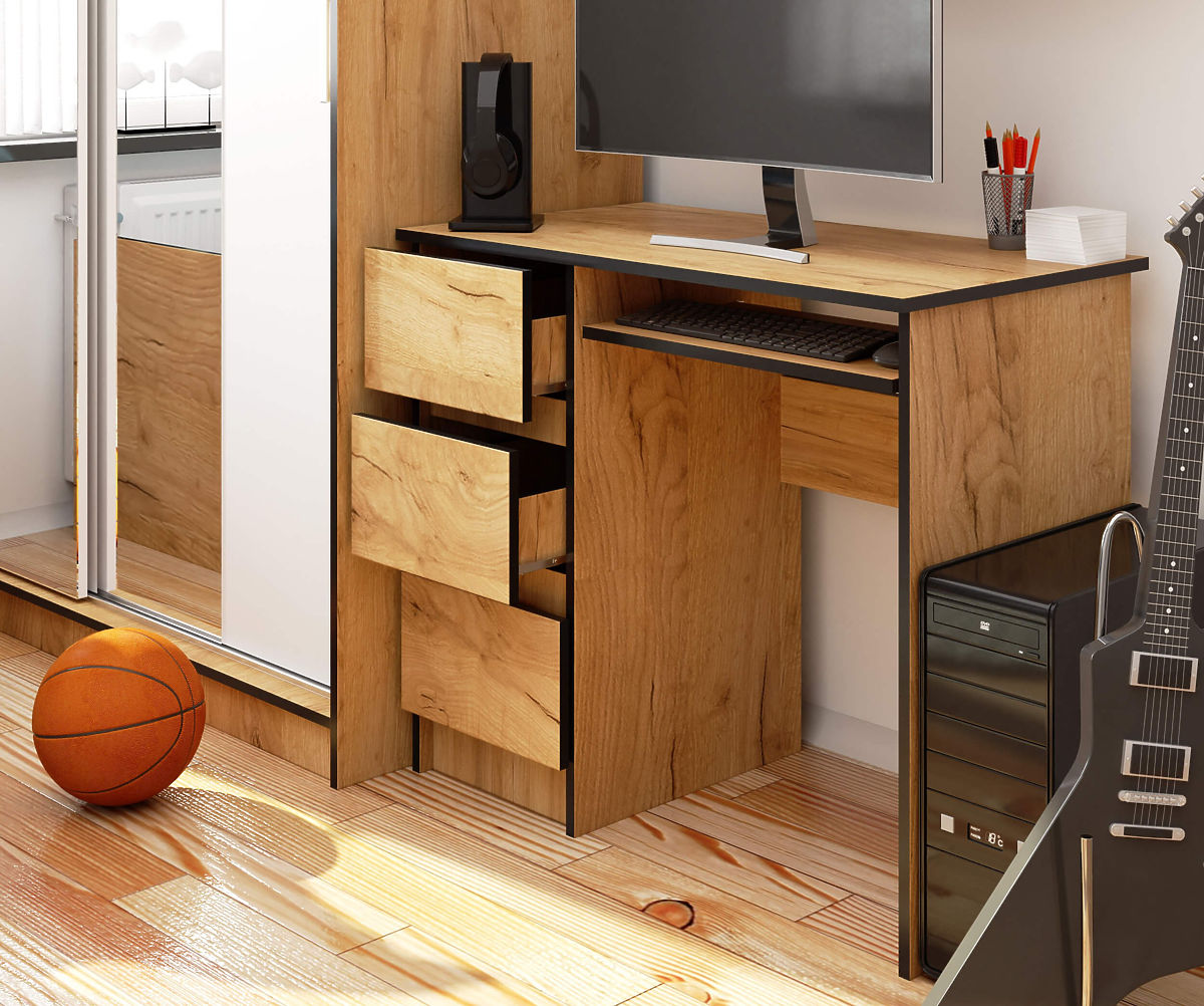Un bureau d'ordinateur peut être fonctionnel tout en ayant une apparence élégante. C'est le cas de notre mobilier : le bureau A-6 90 cm GAUCHE en couleur chêne craft, qui ressemble à du vrai bois. Il se distingue par sa fabrication solide et sa fonctionnalité. Le bureau est parfait pour le salon, la chambre d'enfant ou le bureau, facilitant l'apprentissage et le travail devant l'écran de l'ordinateur.