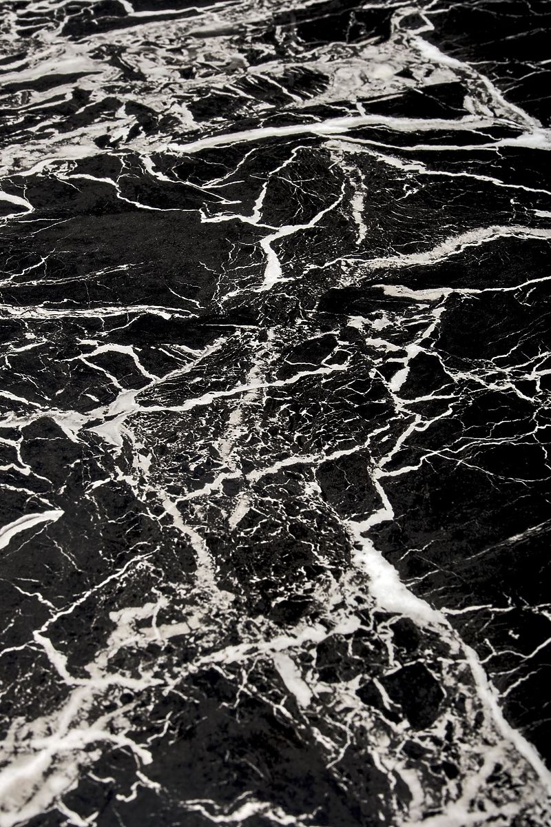 Table ronde en marbre noir avec pieds dorés. .. plus
