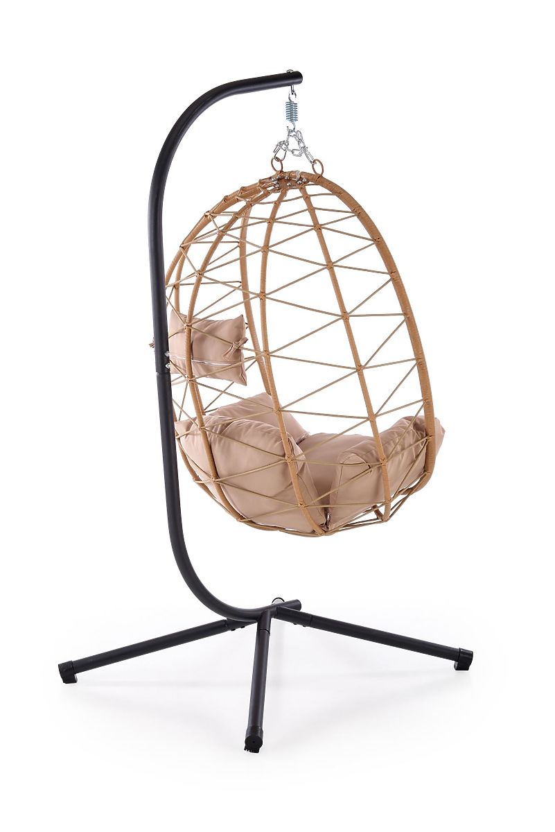 Le fauteuil suspendu Snake est un siège relaxant et stylé conçu pour une personne, créant un espace idéal pour se détendre dans le jardin, sur la terrasse ou le balcon. Sa forme de panier enveloppant offre une sensation d'intimité et de sécurité, tandis que le doux balancement contribue à une relaxation et un relâchement total. Le panier ergonomiquement conçu avec un dossier haut assure un confort optimal pour lire, discuter ou se reposer brièvement. Le fauteuil est accompagné de coussins moelleux qui soutiennent l'assise et le dos, augmentant considérablement le confort d'utilisation. La stabilité est assurée par une structure en acier autoportante avec revêtement en poudre, éliminant le besoin de suspendre le fauteuil au plafond. Cela permet un déplacement facile selon les besoins actuels de la zone de détente. Le poids de la structure contribue à une utilisation sûre et stable. Le panier du fauteuil est fabriqué en éco-rotin durable, qui est aéré, solide et adapté à une utilisation en extérieur. Les éléments métalliques garantissent une longue durée de vie et la solidité de l'ensemble de la structure, tandis que les coussins en tissu ajoutent un caractère chaleureux au fauteuil.
