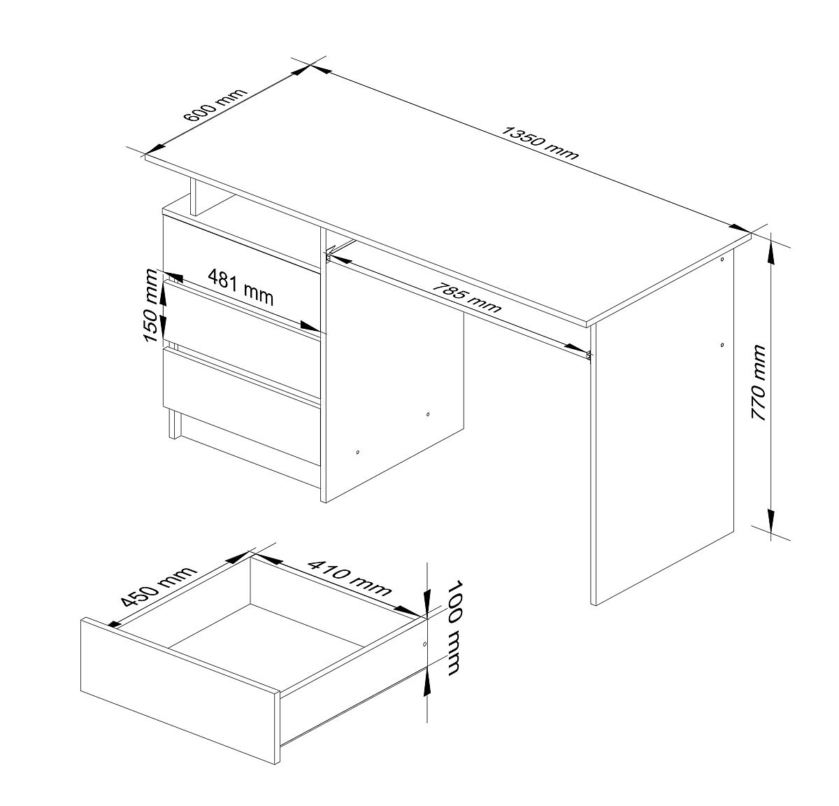 Bureau en panneau laminé de 16 mm résistant à l'usure.