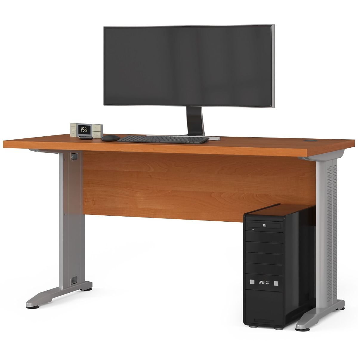 Bureau autoportant en aulne avec pieds en métal et plateau rectangulaire. .. plus