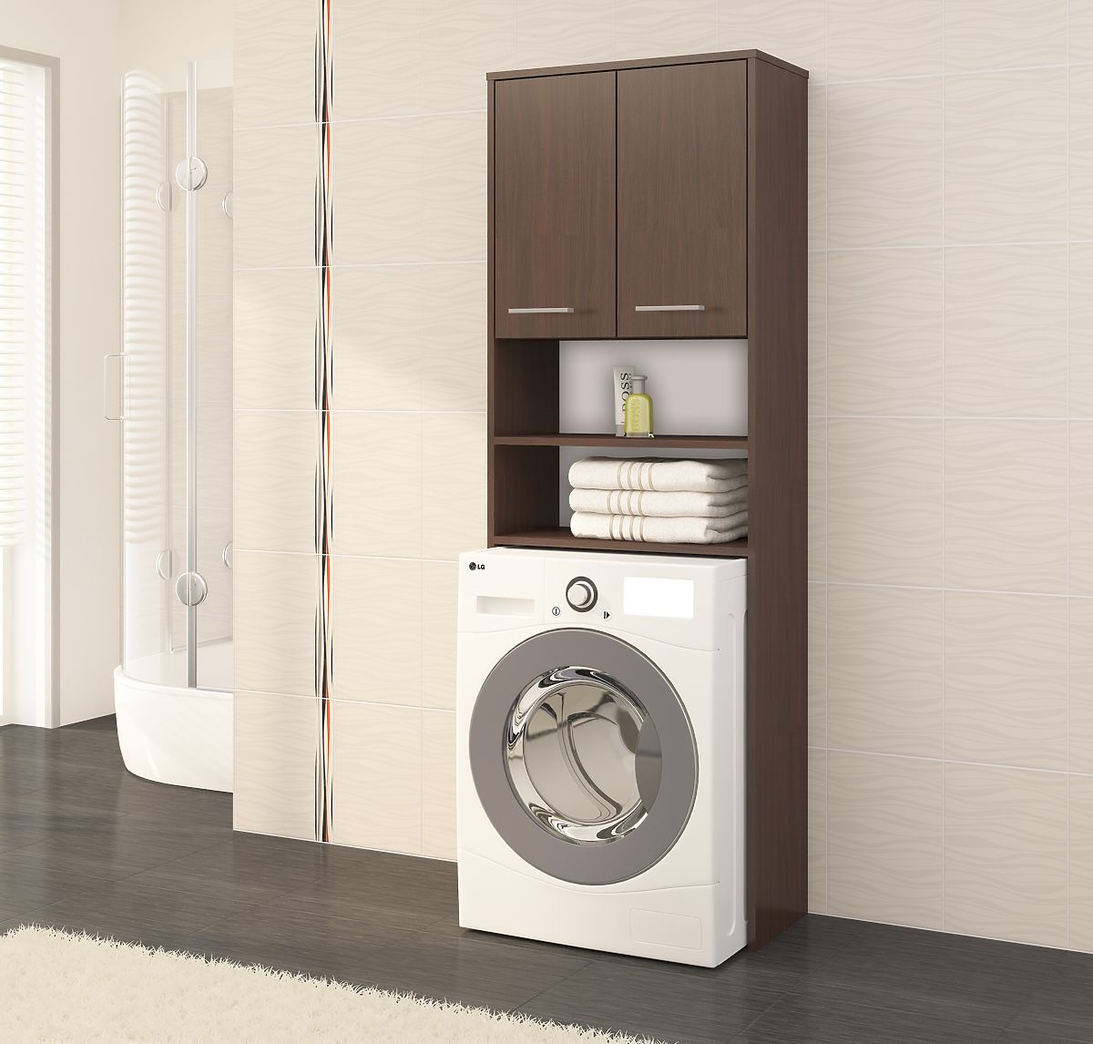 Lukahome.fr » Bathroom & Toilet / Salle de bain armoires / ARMOIRE DE SALLE DE BAIN FIN AU-DESSUS DE LA MACHINE À LAVER WENGE