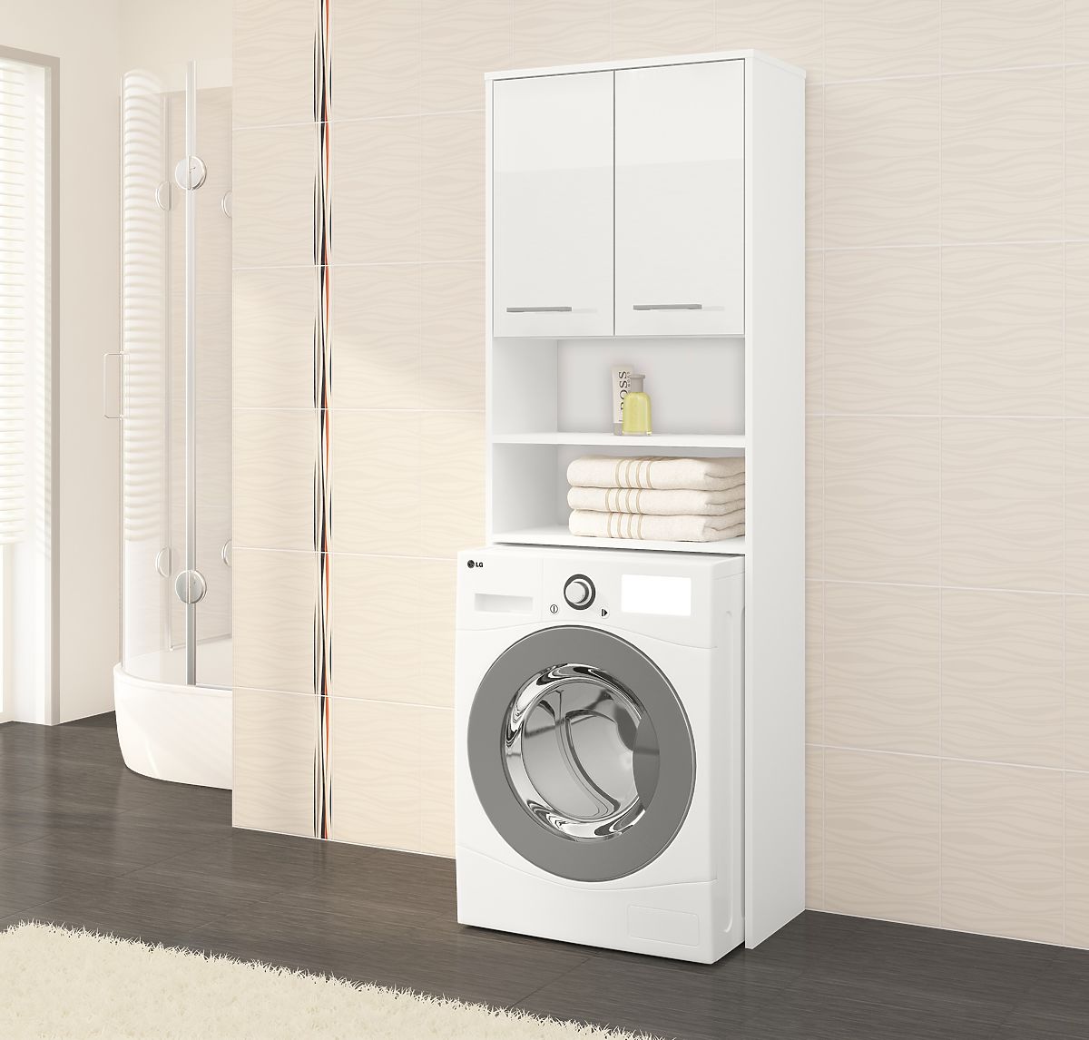 Lukahome.fr » Bathroom & Toilet / Salle de bain armoires / ARMOIRE DE SALLE DE BAIN FIN AU-DESSUS DE LA MACHINE À LAVER BLANC BRILLANT