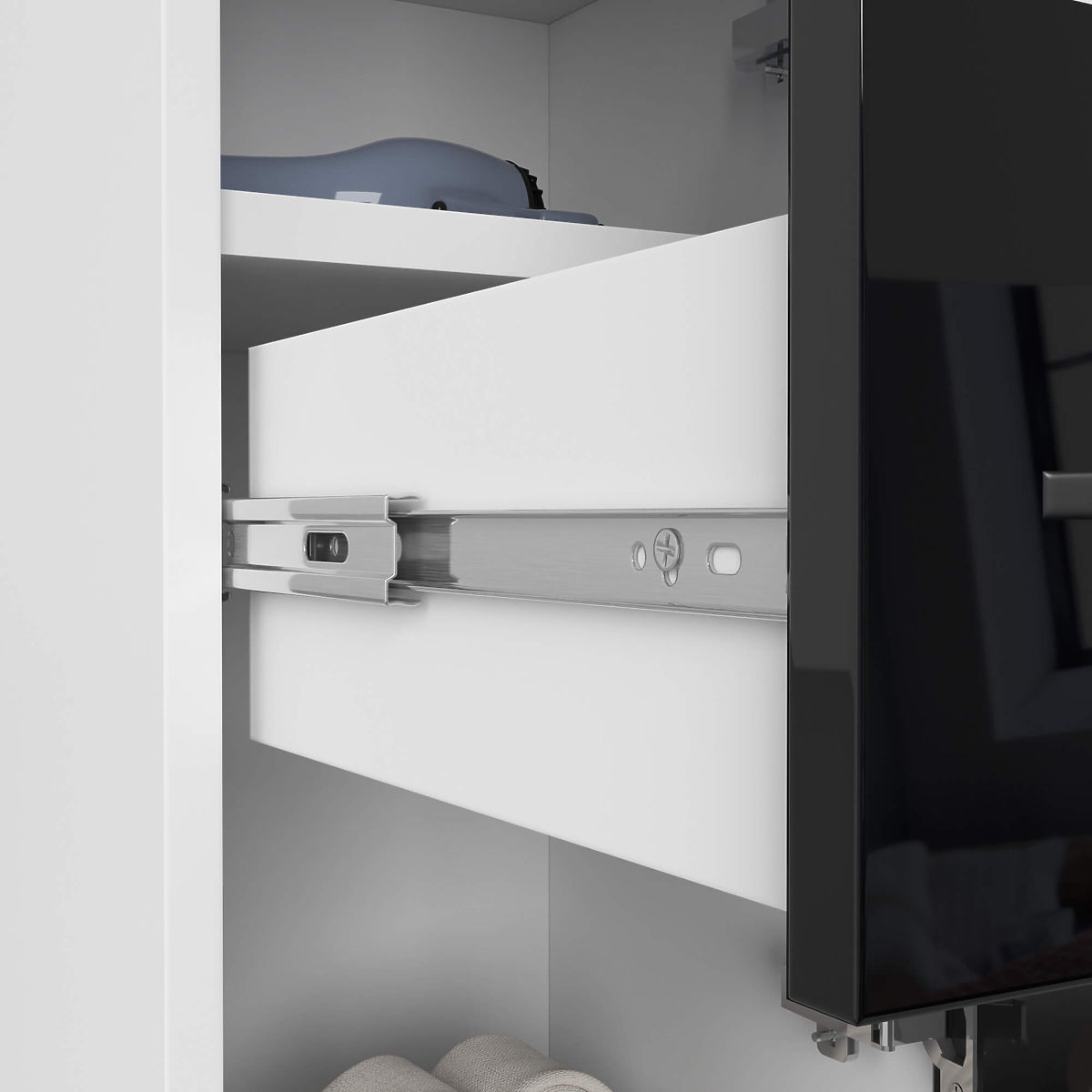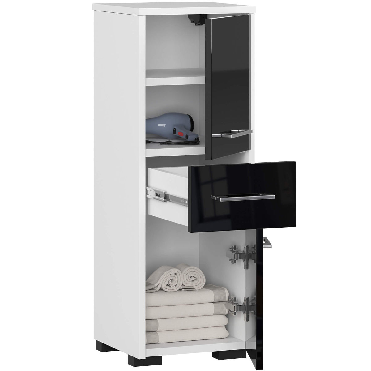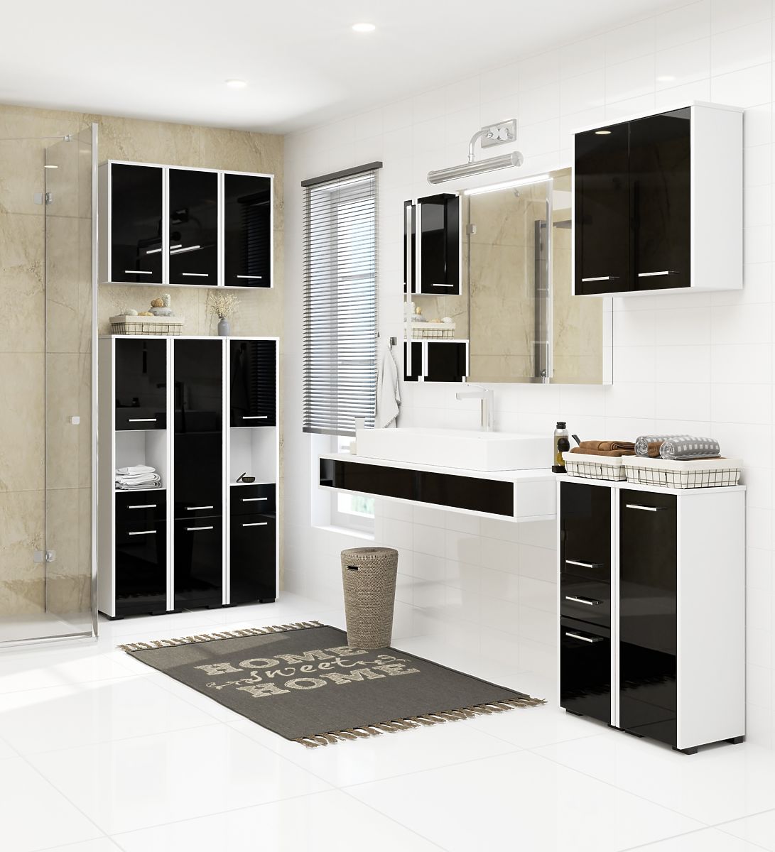 L'armoire-colonne, étagère de salle de bain fin 2D 1SZ (blanc/noir brillant) est un excellent choix pour les espaces de salle de bain. Elle est fabriquée à partir de matériaux qui ne sont pas endommagés par l'humidité, garantissant une longue durée de vie du mobilier et rendant notre salle de bain élégante et très pratique.
