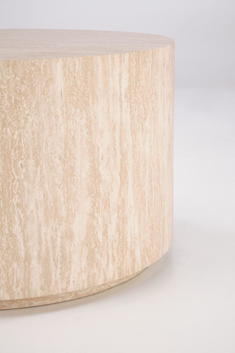 Table basse ronde en MDF avec décor travertin. .. plus