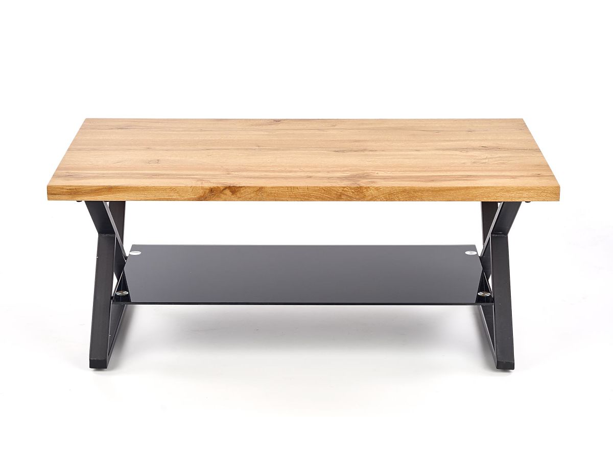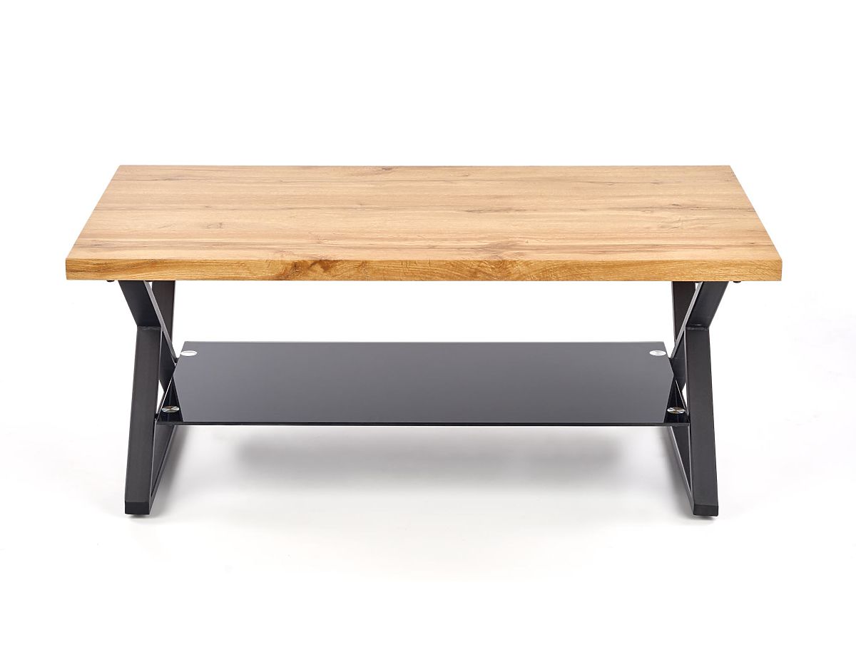 La table basse XENA vous séduira immédiatement par son design minimaliste et élégant. La combinaison harmonieuse de chêne naturel et d'éléments noirs crée un look moderne qui complétera parfaitement un salon, un bureau ou une zone de détente. La table a une apparence légère, intemporelle et s'harmonise facilement avec d'autres meubles de style industriel, scandinave ou moderne. Le plateau est fabriqué en MDF laminé avec un décor de chêne naturel, ce qui le rend non seulement esthétique mais aussi résistant à une utilisation quotidienne. La structure stable en acier laqué par poudrage confère à la table solidité et une touche industrielle moderne. Une étagère en verre pratique sous le plateau est l'endroit idéal pour ranger des magazines, des télécommandes ou des décorations, maintenant ainsi un ordre parfait sur la surface principale.