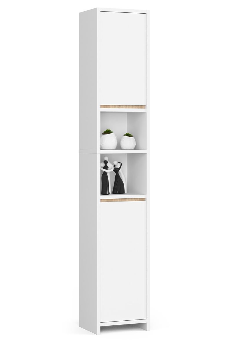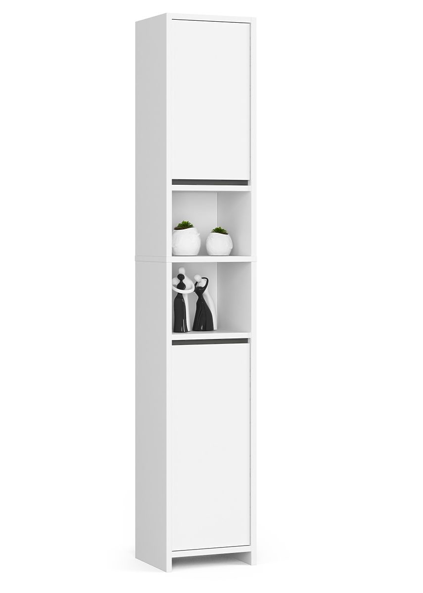Armoire de salle de bain blanche avec 2 portes et 4 étagères. .. plus