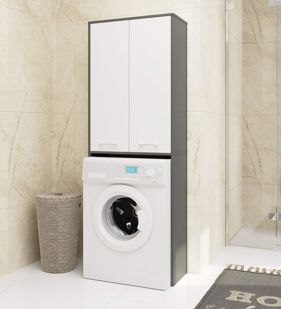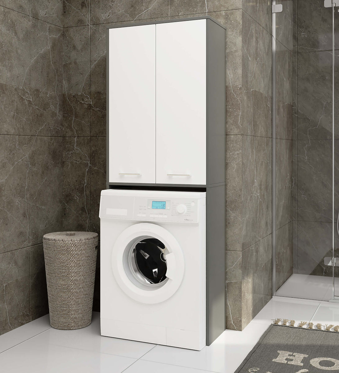 Lukahome.fr » Bathroom & Toilet / Salle de bain armoires / COLONNE DE SALLE DE BAIN FIN 180 POUR MACHINE À LAVER PLEINE 2D - GRIS / BLANC