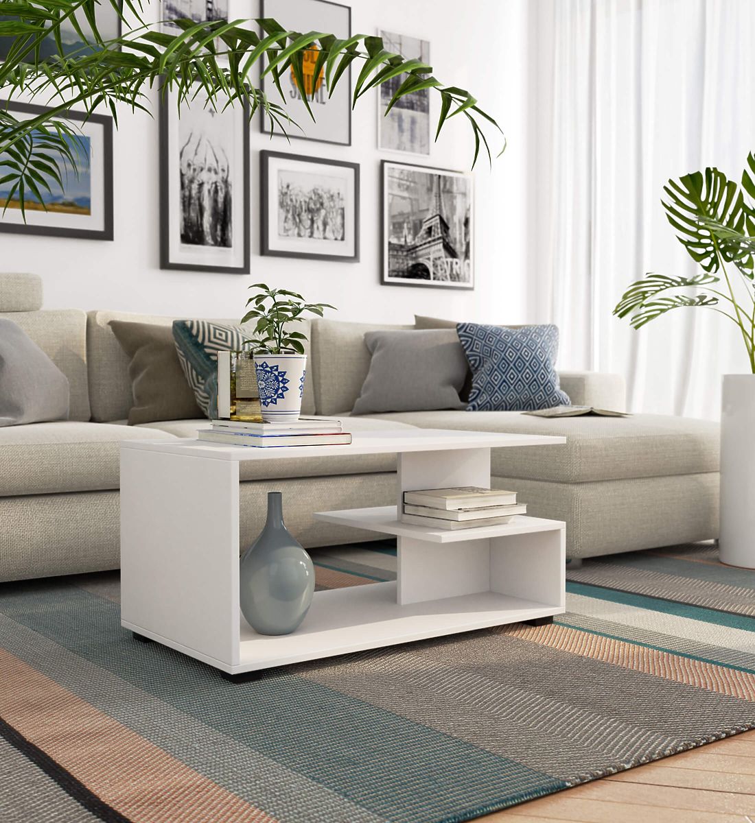 Table basse blanche en panneau laminé résistant à l'usure. .. plus