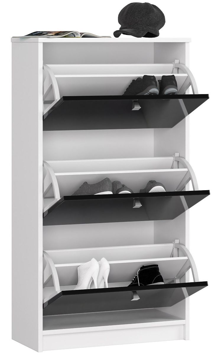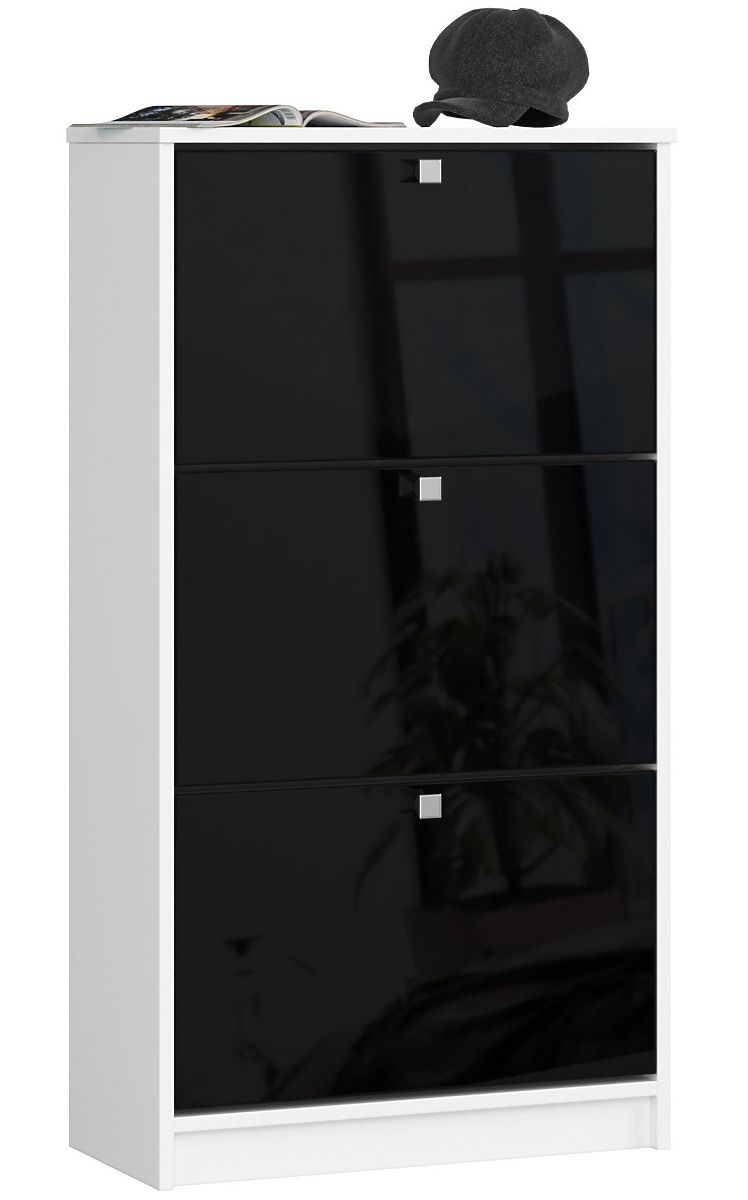 Lukahome.fr » Meubles / étagères à chaussures / MEUBLE À CHAUSSURES 3 PORTES ABATTANTES 60 cm BLANC / NOIR BRILLANT