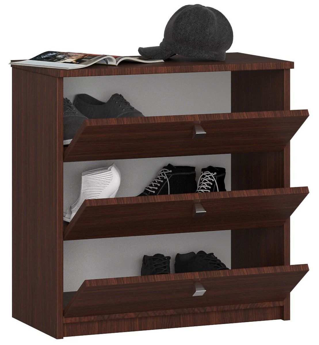 Meuble à chaussures compact avec 3 portes basculantes en couleur wenge. .. plus