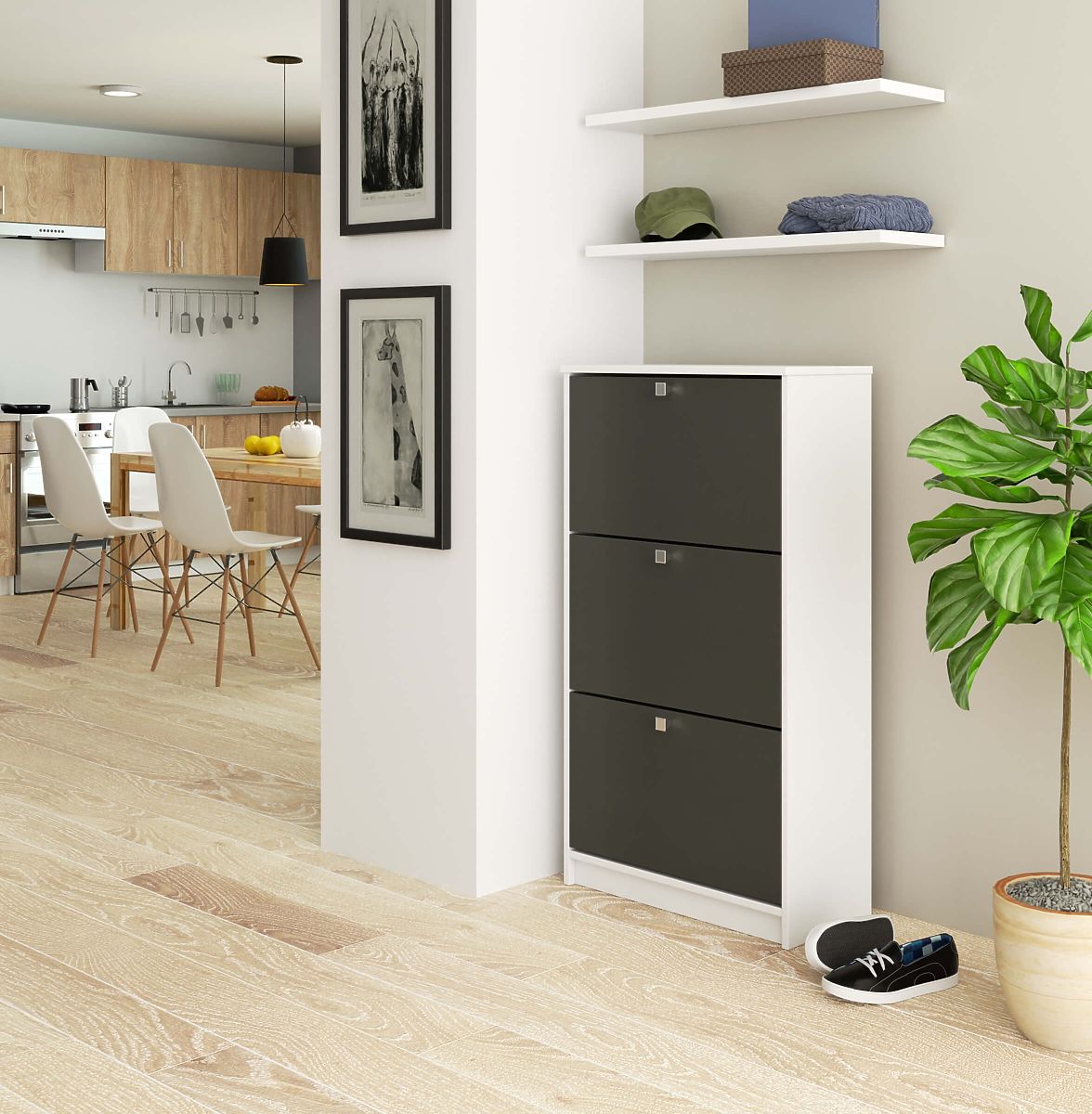 Lukahome.fr » Meubles / étagères à chaussures / Meuble à chaussures 3 portes basculantes 60 cm - blanc-gris graphite