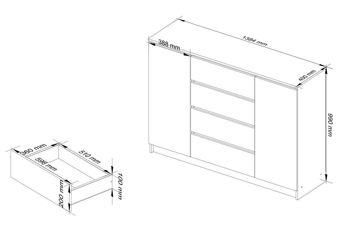La commode K 140 cm est fabriquée avec des matériaux de haute qualité, ce qui lui permet de compléter parfaitement chaque pièce où elle sera utilisée. Le rapport qualité-prix attractif rend ce produit très populaire. Grâce à son apparence, sa couleur intemporelle et ses façades acryliques, elle s'adapte à de nombreux agencements variés, représentant un meuble efficace et très pratique.