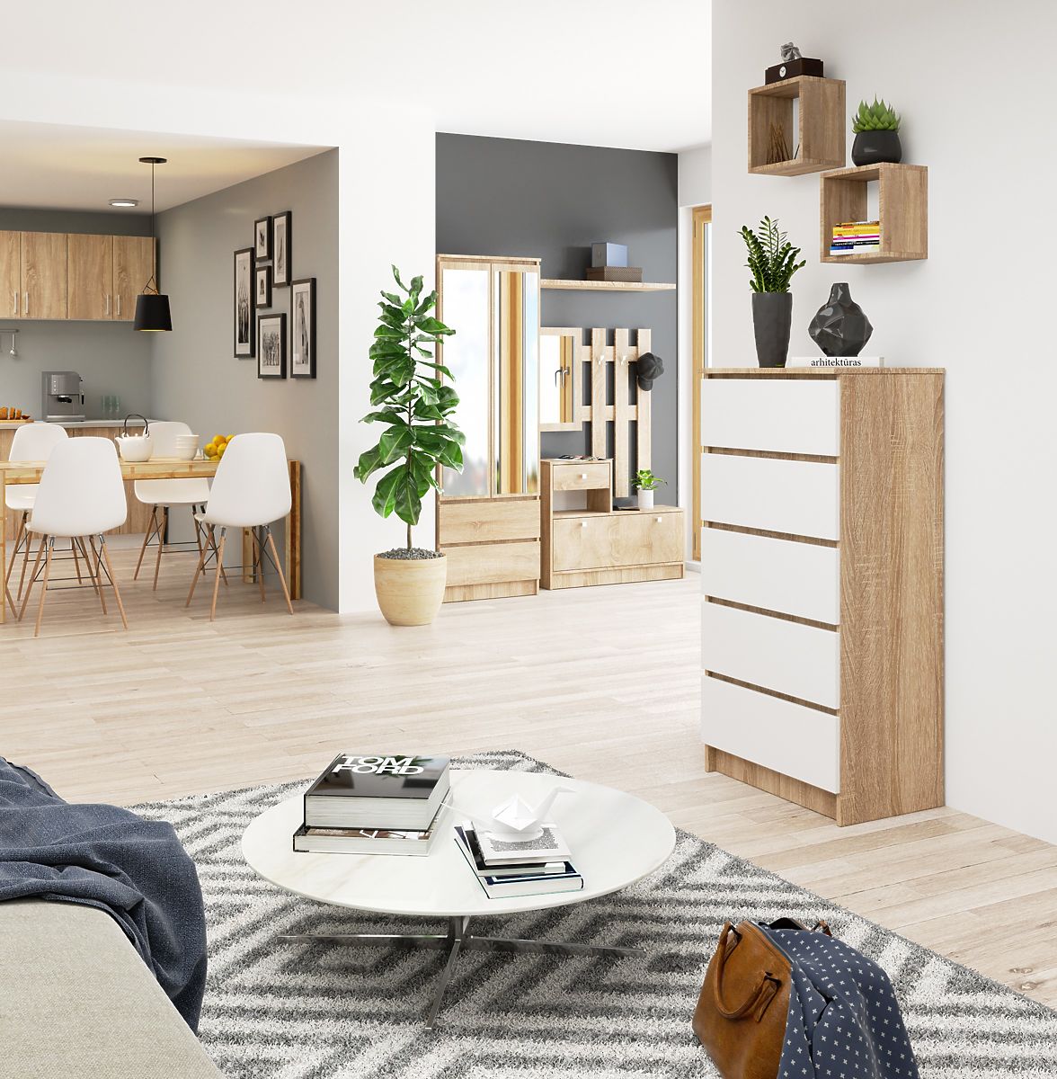 Commode 5 tiroirs en chêne Sonoma et blanc, autoportante. .. plus
