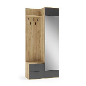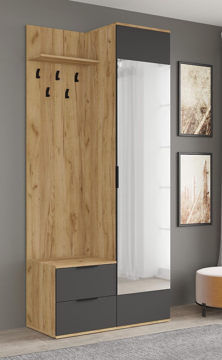 Vestiaire en chêne doré et anthracite avec miroir. .. plus