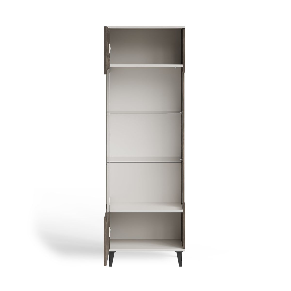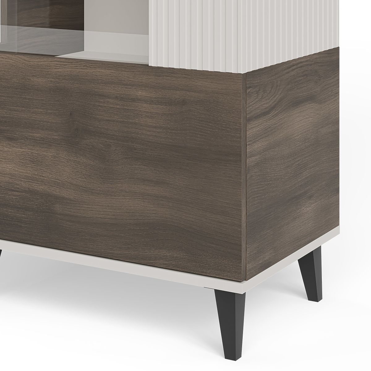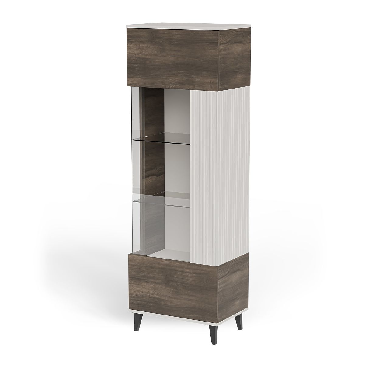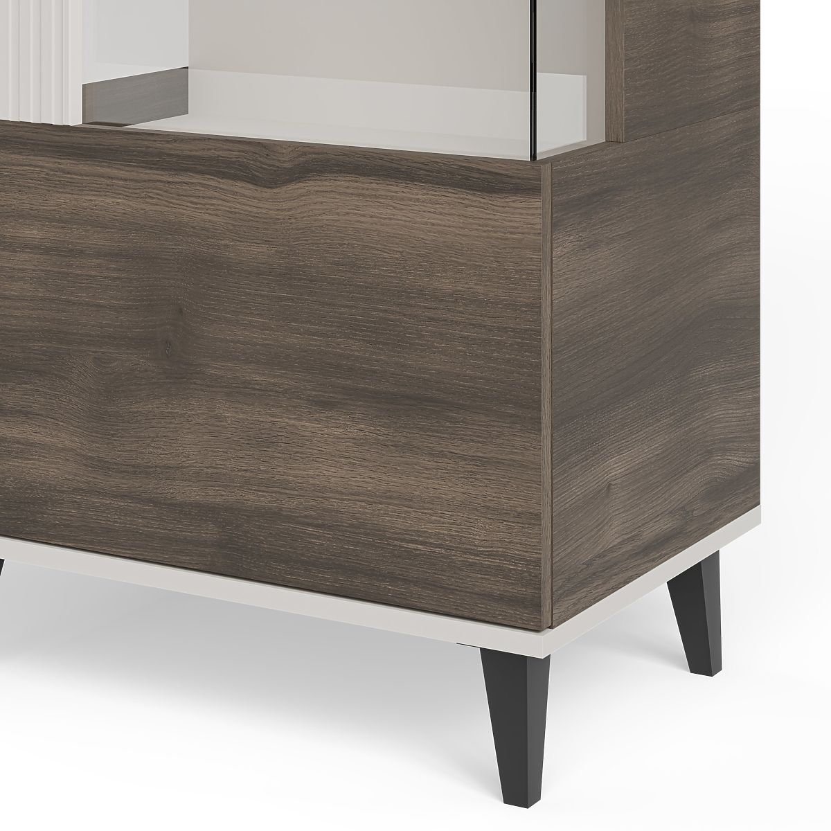 Vitrine moderne en cachemire, noyer et noir avec portes en verre et étagères spacieuses. .. plus