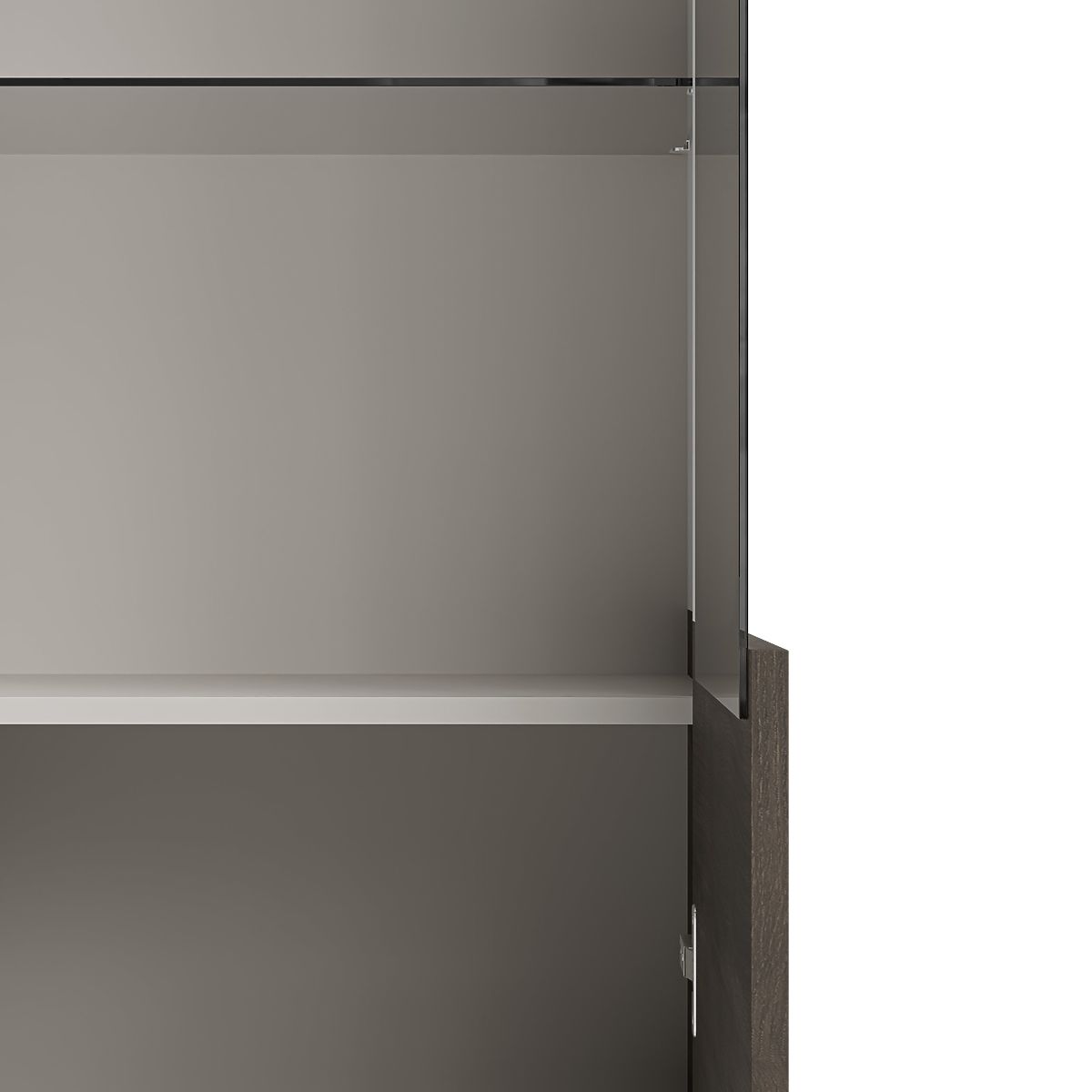 La vitrine RANDOM est un complément élégant et marquant pour votre intérieur, qui attire immédiatement l'attention. Le "rideau" noir légèrement plissé sur le côté cache élégamment les portes en verre et ajoute une touche de mystère et de sophistication à la vitrine. La combinaison harmonieuse de cachemire, de bois de noyer et de détails noirs crée un look moderne et intemporel, qui s'intègre parfaitement dans les salons, chambres, bureaux et halls. Derrière les portes en verre, se trouvent trois étagères spacieuses, idéales pour exposer des décorations, des livres, des souvenirs personnels ou d'autres petits objets. Avec une hauteur de 182 cm, la vitrine offre un espace de rangement suffisant sans perdre en légèreté visuelle et élégance. Les pieds bas de la vitrine, inclinés à un angle obtus, assurent la stabilité et une base solide, tandis que les matériaux de qualité – panneau MDF plaqué, panneau de meuble plaqué et éléments en polypropylène – garantissent une longue durée de vie et une résistance à l'utilisation quotidienne. La vitrine RANDOM est donc non seulement belle à regarder, mais aussi fonctionnelle et pratique.