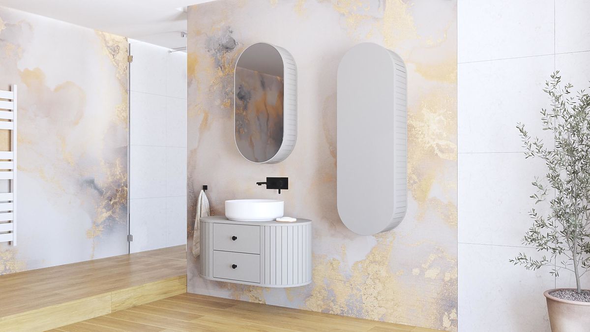 Lukahome.fr » Salle de bains et toilettes / meubles de salle de bain / Armoire à miroir VENEZIA 1D cachemire (2p=1ks)
