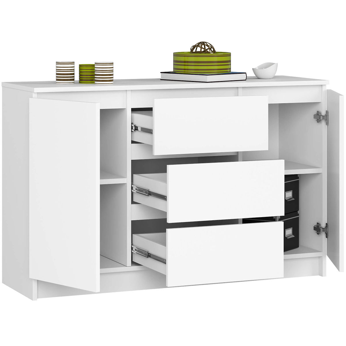 Commode blanche avec 3 tiroirs et 2 portes abattantes. .. plus