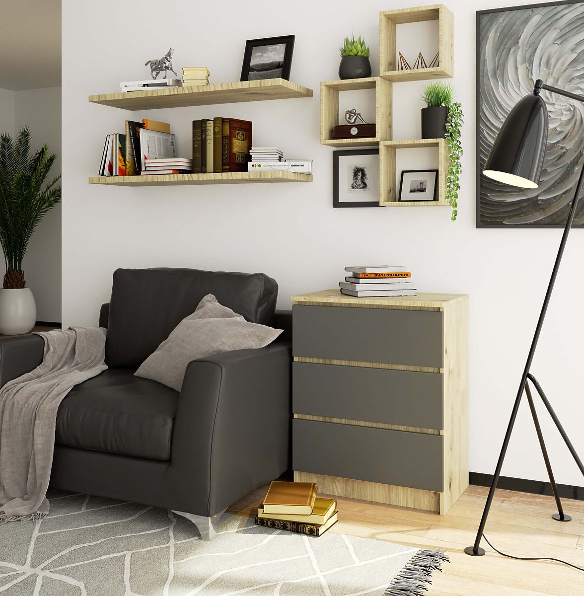 COMMODE K60 3 TIROIRS Fabriquée en panneau laminé de 16 mm résistant à l'usure.