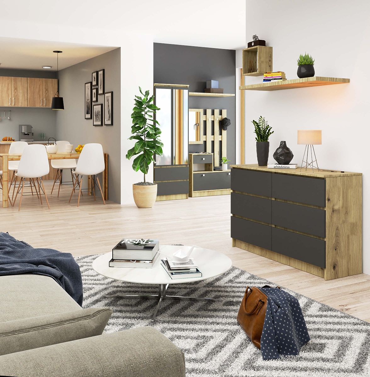 COMMODE K120 6 TIROIRS Fabriquée en panneau laminé de 16 mm résistant à l'usure.