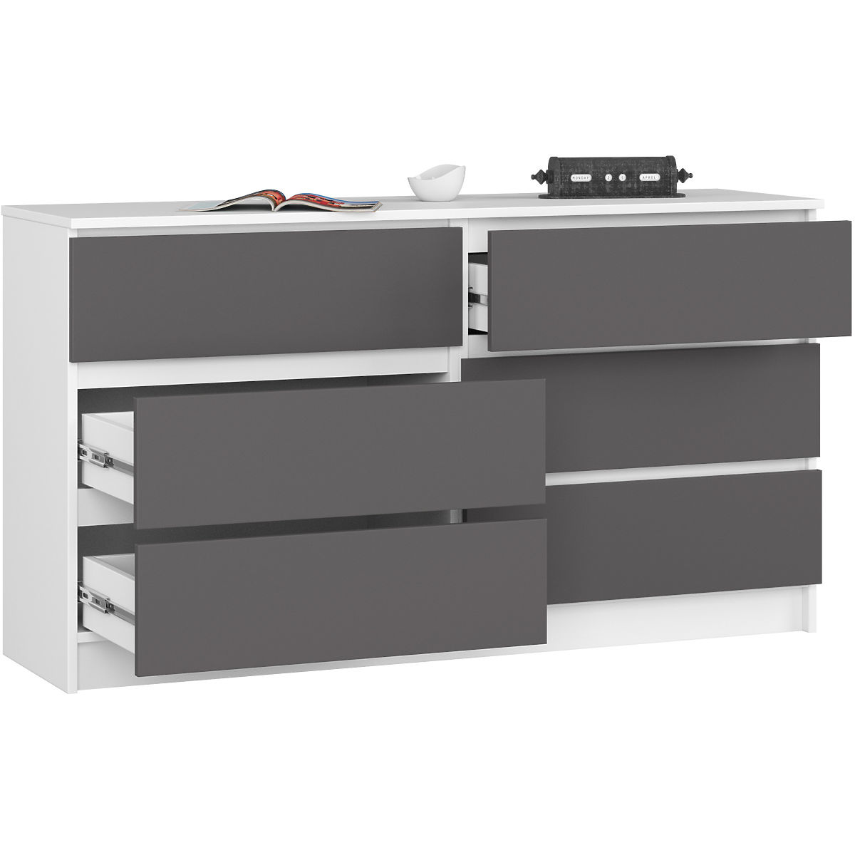 Commode en panneau laminé avec 6 tiroirs, blanc et gris graphite. .. plus