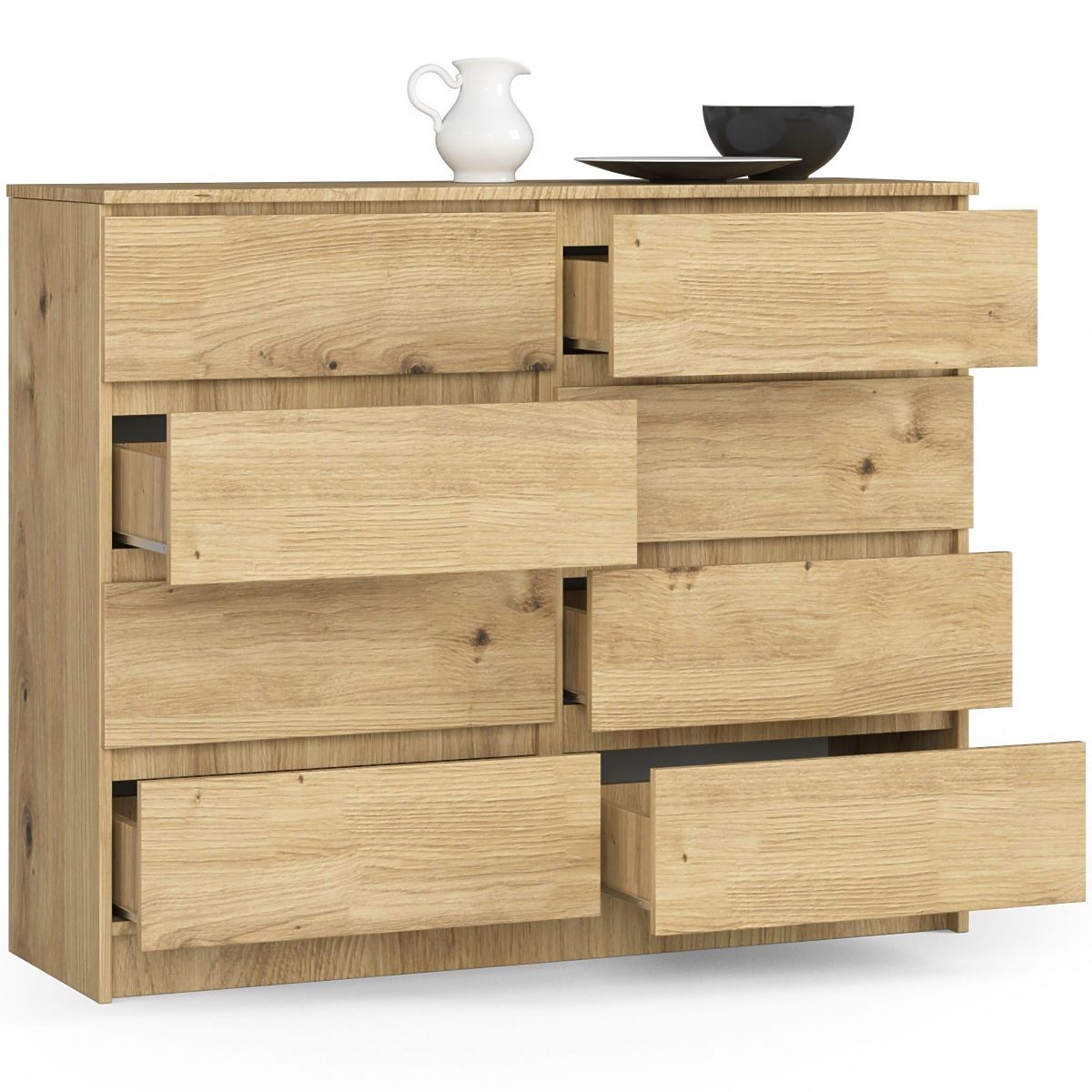 Commode en chêne Artisan avec 8 tiroirs et montage facile. .. plus