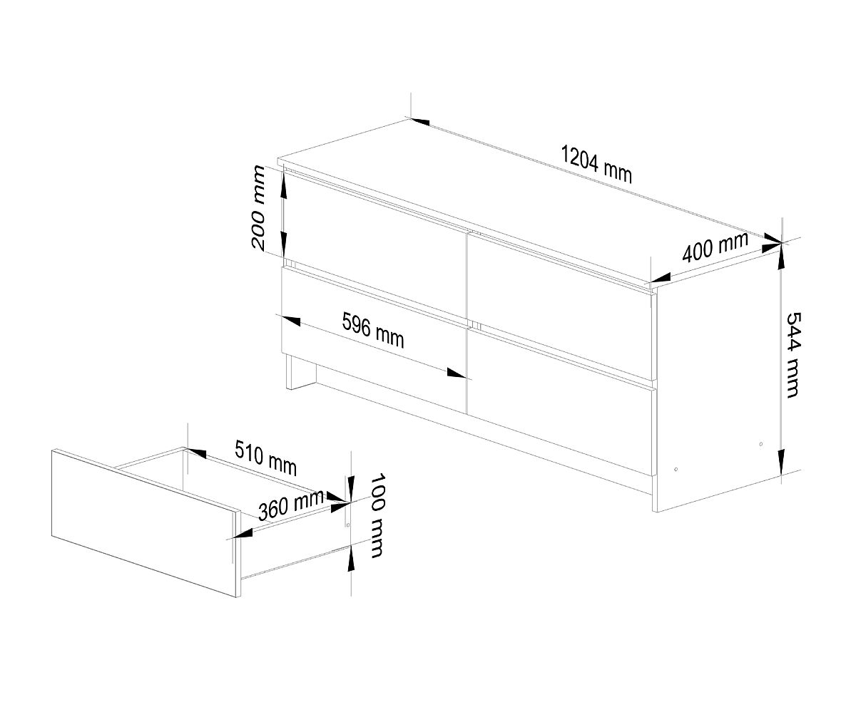 Commode en chêne Artisan avec 4 tiroirs et montage facile. .. plus