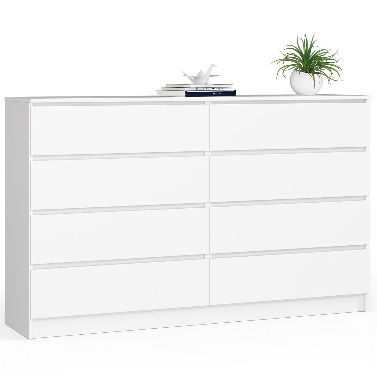 Commode blanche avec 8 tiroirs spacieux et design moderne. .. plus