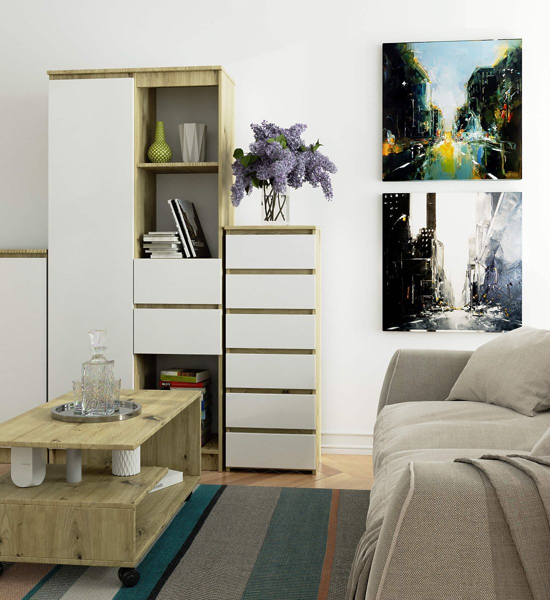 Les commodes sont un type de meuble populaire, souvent placé à côté du lit. Sur son plateau se trouve généralement une lampe, tandis qu'à l'intérieur se trouvent des objets facilitant le repos et le sommeil. Ceux qui recherchent une commode élégante devraient prêter attention à la commode CL6 de 40 cm en couleur chêne artisan avec des façades blanches. Elle s'intégrera parfaitement dans toute chambre à coucher. Elle peut également être placée dans une chambre d'enfant.