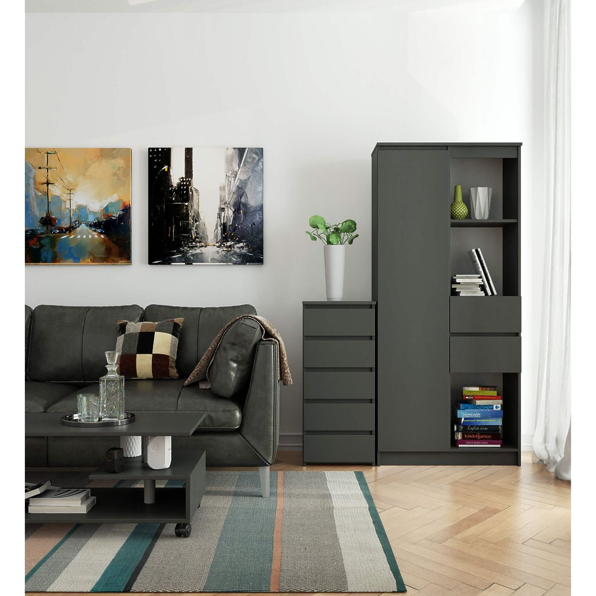 - apparence élégante - la commode est simple dans sa forme, se distingue par sa couleur stylée gris graphite,