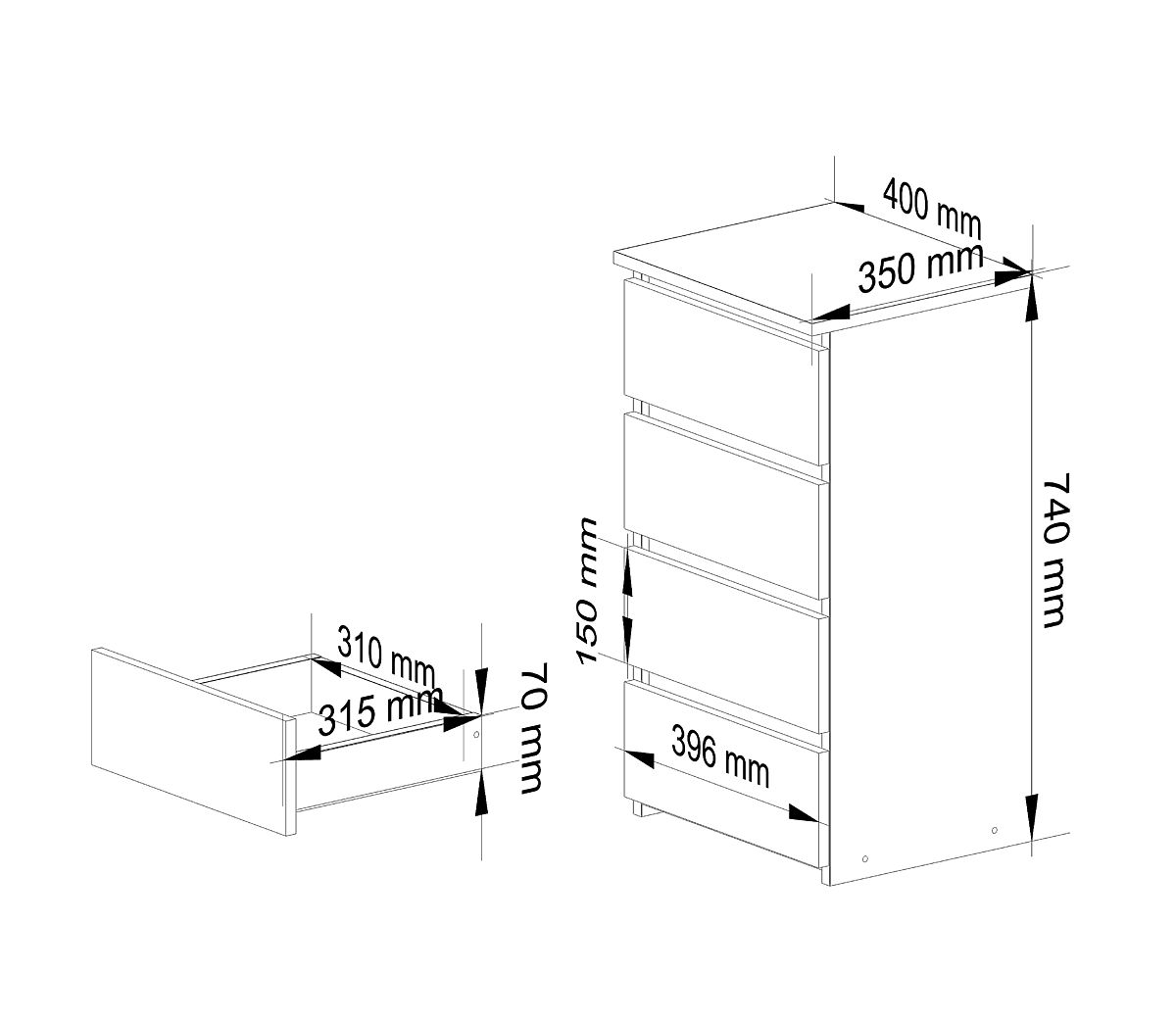 Commode blanche CL4 avec 4 tiroirs, idéale pour la chambre. .. plus